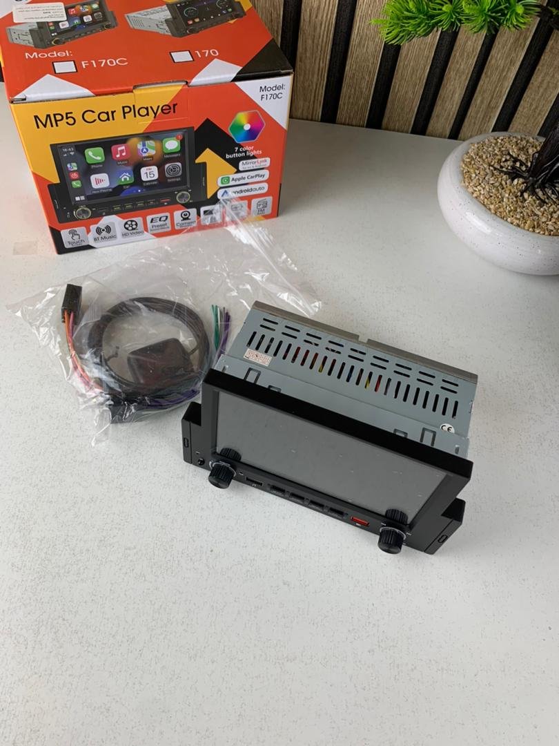 📱 نظام CarPlay و Android Auto مدمج يمكنك توصيل هاتفك iPhone أو Android مباشرة عبر كابل USB للاستفادة من جميع المميزات مثل جهات الاتصال، البريد الإلكتروني، الإشعارات، الخرائط، الموسيقى والفيديوهات، وحتى استخدام الأوامر الصوتية بكل سهولة أثناء القيادة. 🔗 يدعم كذلك Android Auto عبر التطبيق الرسمي والكابل لتجربة ذكية وآمنة على الطريق.🪞 ميزة عرض الشاشة (Mirror Link) من خلال كابل USB، يمكنك عرض شاشة هاتفك بالكامل على شاشة السيارة في الوقت الحقيقي.هواتف Android (الإصدار 10.1 أو أقل) تدعم التحكم ثنائي الاتجاه (من الشاشة أو الهاتف).هواتف iPhone (iOS 13.3 أو أقل) تدعم العرض فقط والتحكم يتم من الهاتف.🎵 بلوتوث وراديو FM مدمج نظام البلوتوث الجديد يتيح لك الرد على المكالمات بدون استخدام اليدين وتشغيل الموسيقى بسهولة. كما يدعم الراديو FM بـ 18 محطة مسبقة الإعداد للاستماع إلى الأخبار، الطقس، والمعلومات المرورية في أي وقت.📸 كاميرا خلفية وتحكم من المقود المنتج مزود بـ كاميرا رجوع عالية الجودة، تعمل تلقائيًا عند الرجوع إلى الخلف لتمنحك رؤية واضحة وآمنة. كما يمكنك التحكم في وظائف النظام من عجلة القيادة بكل راحة دون تشتيت انتباهك أثناء القيادة.🖥️ شاشة لمس عالية الدقة شاشة Full HD تعمل باللمس بحجم 6.2 بوصة، تمنحك تجربة مرئية واضحة وسريعة الاستجابة، وتبقي كل ما تحتاجه في متناول يدك.📏 الأبعاد: 187 × 58 × 73 ملم (7.37 × 2.28 × 2.87 بوصة) يأتي مع جميع الكابلات اللازمة للتركيب.🚗✨ اختيار مثالي لمن يريد تحويل سيارته إلى تجربة ذكية وآمنة تجمع بين الترفيه والراحة.