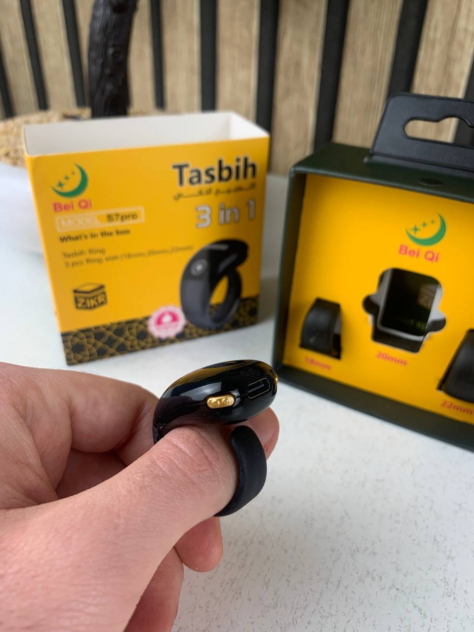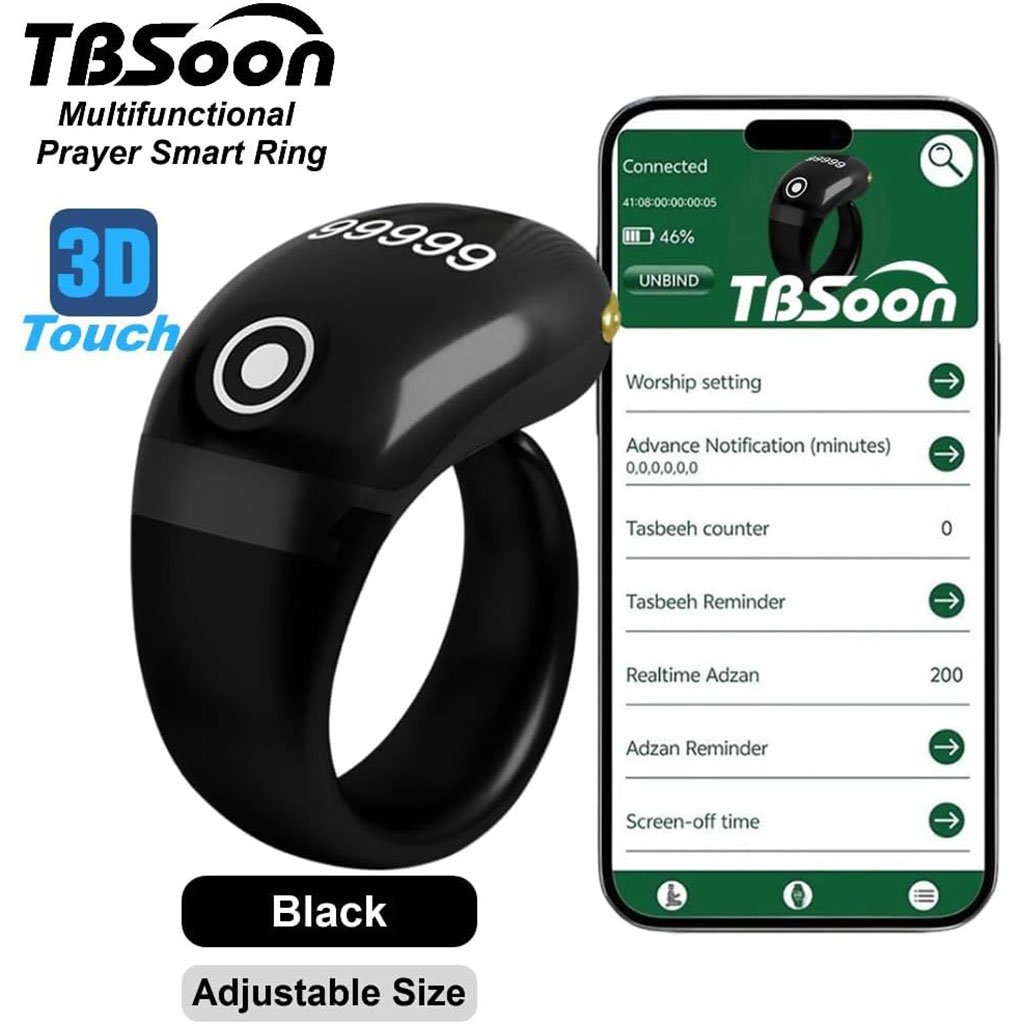 🕌 خاتم ذكي للذكر والعبادة مع شاشة OLED✨ الميزات الرئيسية🔢 عداد ذكي بشاشة OLED واضحة مصنوع من مادة ABS المتينة، يأتي هذا الخاتم الإسلامي الذكي القابل للتعديل بشاشة OLED عالية الوضوح تُمكّنك من عدّ الذكر والتسبيح بدقة تصل إلى 99,999 عدّة، ما يجعله مثاليًا للاستخدام اليومي في الصلاة والذكر بكل سهولة ودقة.⏰ تنبيهات واهتزازات ذكية يوفر 4 قنوات عدّ مستقلة، مع 3 أوضاع للاهتزاز:مضاعفات 33مضاعفات 100مضاعفات 33 و100وضع بدون اهتزاز ليسهل عليك متابعة الأذكار دون تشتيت.📏 مقاس قابل للتعديل مصمم بمقاسات قابلة للتعديل (18 / 20 / 22 مم) ليناسب مختلف أحجام الأصابع. خفيف جدًا بوزن 6.7 غرام فقط، مع زر لمس حساس لراحة تامة طوال اليوم، ومناسب للرجال والنساء.🔋 بطارية طويلة العمر بطارية مدمجة قابلة لإعادة الشحن بسعة 75 mAh، توفر استخدامًا يصل إلى 3 أشهر بعد شحنة واحدة فقط. مزود بمنفذ شحن Type-C لسهولة وسرعة الشحن.🎁 تغليف أنيق – جاهز للإهداء يأتي في علبة أنيقة، مما يجعله هدية إسلامية مثالية لعيد الفطر، عيد الأضحى، الأعراس، للمسلمين الجدد أو للاستخدام الشخصي اليومي.