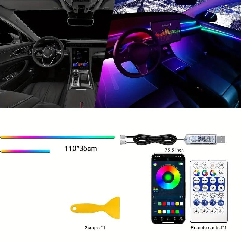 Bande lumineuse LED en néon RGB pour intérieur de voiture, éclairage suivi son d’ambiance Avec app et télécommande