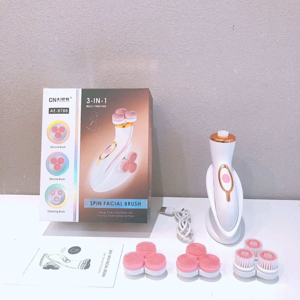 Brosse Nettoyante Électrique Cnaier AE-8788 3 Têtes Rotatives Recharge USB – جهاز تنظيف البشرة بعمق