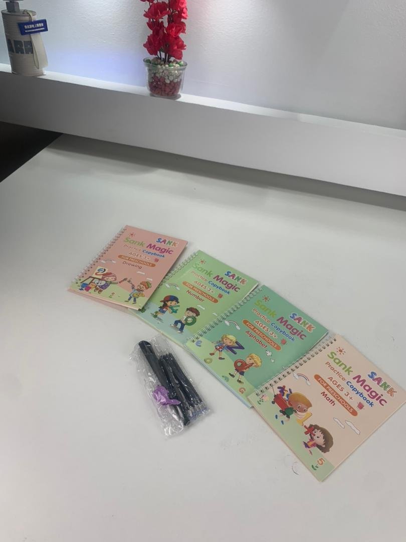 ✏️ مجموعة دفاتر التدريب السحرية – لتعلّم الكتابة بطريقة ممتعة وفعالة 🌟امنح طفلك تجربة تعليمية ممتعة تجمع بين التعلم واللعب! هذه المجموعة الكاملة تساعد الأطفال على تحسين مهارات الكتابة بطريقة تفاعلية وسهلة.📚 المميزات الرئيسية :🧩 مجموعة متكاملة : تحتوي على 4 دفاتر تدريب و10 خراطيش حبر لتجربة تعلم شاملة.🔁 قابلة لإعادة الاستخدام : الحبر يختفي تدريجيًا بعد فترة، مما يسمح بإعادة الكتابة على نفس الصفحات عدة مرات.✍️ تصميم مريح للتعلم : تحتوي الصفحات على أخاديد موجهة تساعد الطفل على كتابة الحروف بالشكل الصحيح وتنمية المهارة اليدوية الدقيقة.📄 جودة عالية : مصنوعة من ورق سميك ومتين يتحمل الاستخدام المتكرر دون تمزق.👶 مثالية للأطفال : مناسبة لأطفال مرحلة ما قبل المدرسة لتعليم أساسيات الكتابة والخط بطريقة مسلية وتفاعلية.🎁 الهدية المثالية لتنمية مهارات الكتابة لدى الأطفال وتأسيسهم بطريقة ذكية وممتعة!