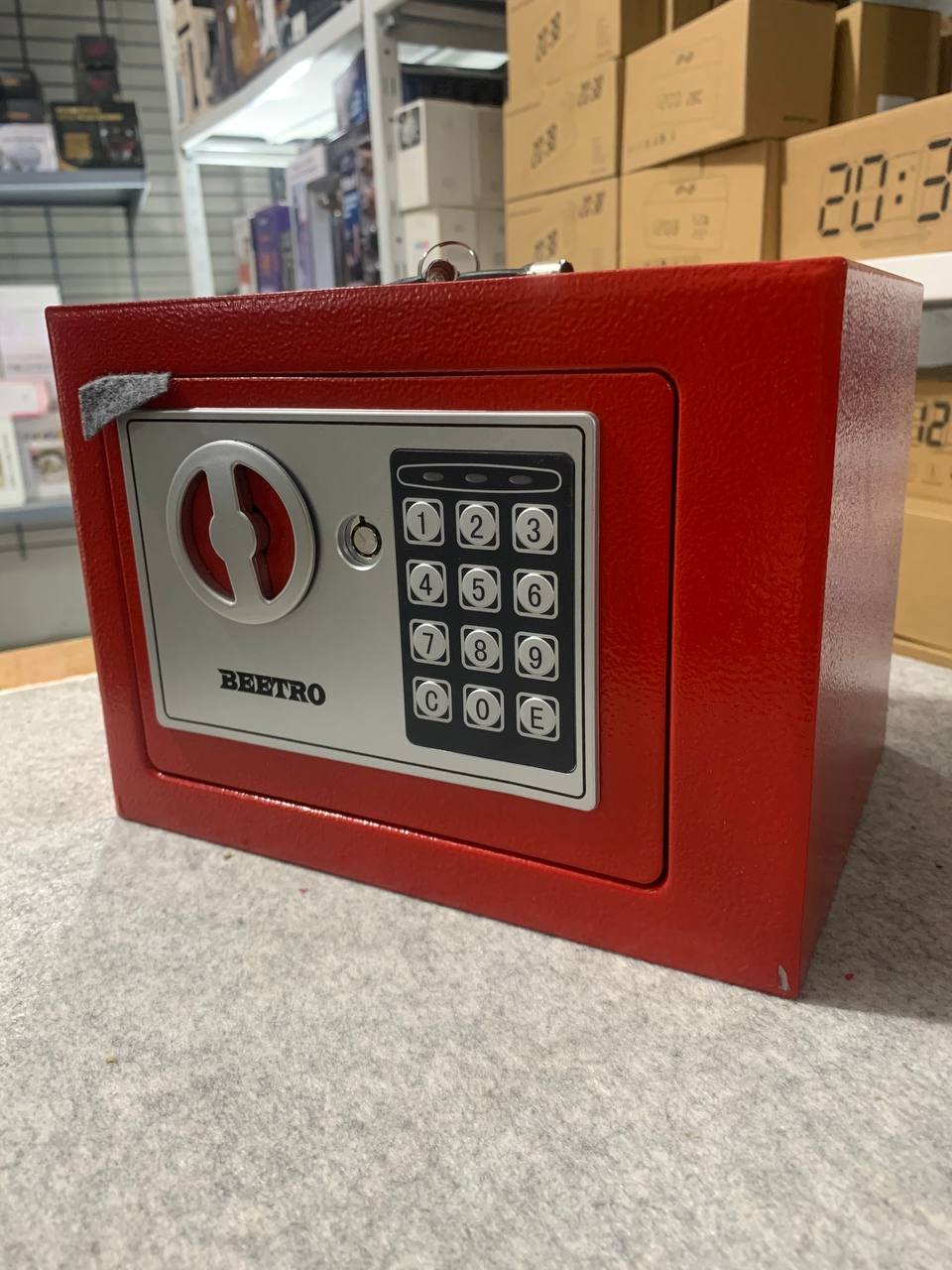 خزنة آمنة بترميز رقمي ومفاتيح احتياطيةقفل رقمي قابل للبرمجة (3 إلى 8 أرقام).إمكانية الفتح الطارئ باستخدام مفتاحين مرفقين.دعم التركيب على الجدار أو داخل الخزانة.قفل عالي الجودة بمزلاجين فولاذيين (إغلاق مزدوج).الوزن: 2.4 كجم.الأبعاد: 25×19×19 سم.