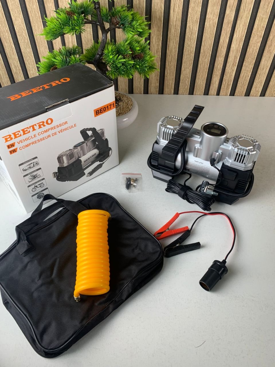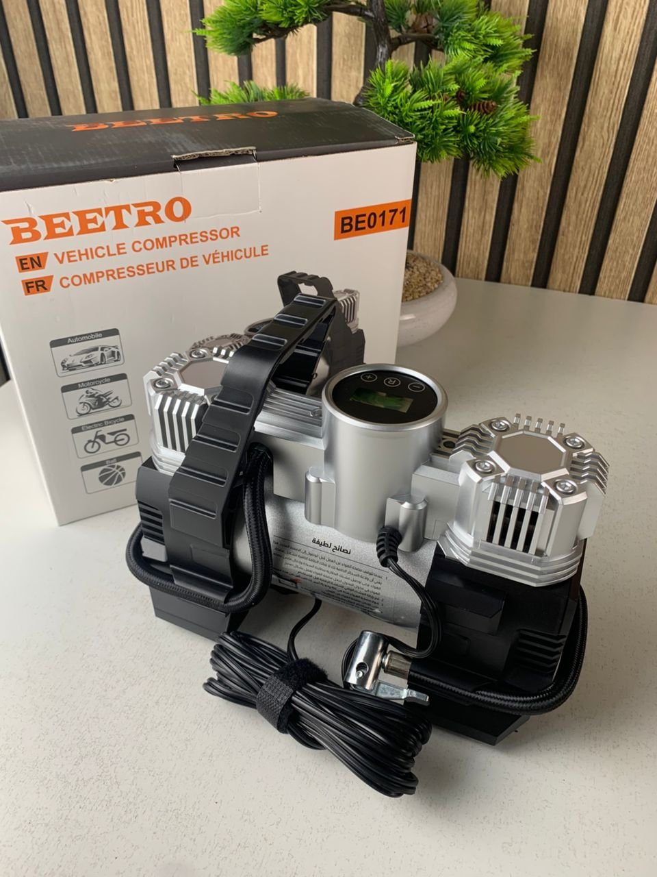 Compresseur de voiture à double piston écran LCD 180W 150psi BE0171 – جهاز ضغط العجلات للسياراة
