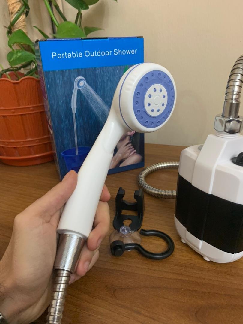 دش محمول متعدد الاستخدامات بتصميم عمليمادة قوية: مصنوع من ABS عالي الجودة، مقاوم للصدمات والتآكل وطويل العمر.موفر للماء: تصميم ذكي بمفتاح مزدوج للتحكم في تدفق المياه مع أداء مرتفع وضغط ثابت.محمول وخفيف: سهل التخزين والحمل داخل الحقيبة أو السيارة للرحلات والأنشطة الخارجية.تشغيل بالبطارية: مزود ببطارية ليثيوم 2200mAh قابلة لإعادة الشحن لتوفير تجربة استحمام مريحة.متعدد الاستخدام: مناسب للاستحمام الداخلي والخارجي، تنظيف السيارات والحيوانات الأليفة، وري الحدائق.المواصفات:الوزن: 740 غرامطول الخرطوم: 1.5 م + رأس دش 20 سممعدل التدفق: 4-6 لتر/دقيقةالبطارية: ليثيوم 2200mAh (مضمنة)