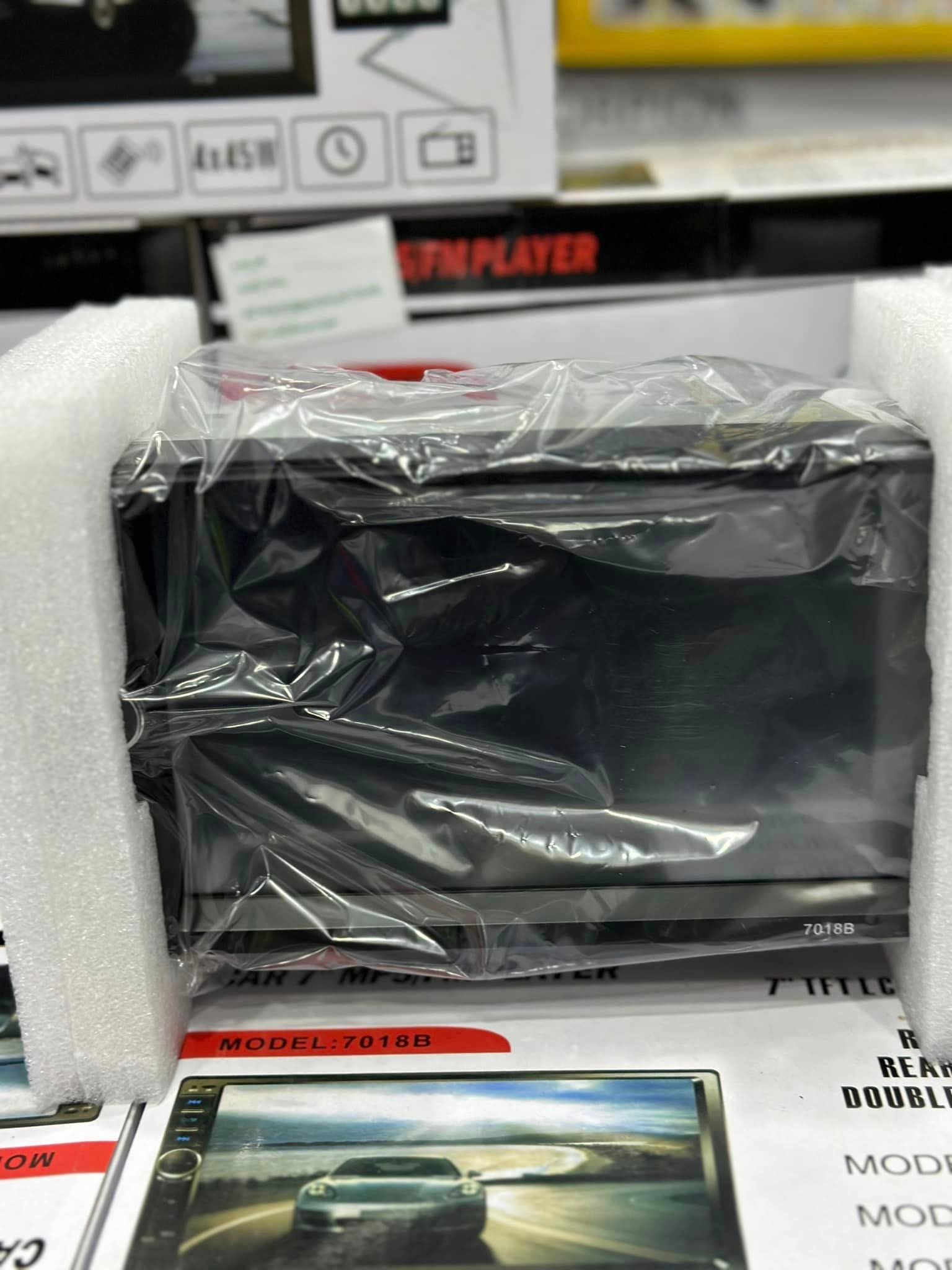 جهاز DVD للسيارة (موديل 7018B)الميزات:التحويل التلقائي إلى صورة الرجوع عند السير للخلفدعم الاتصال الثنائي لهواتف الأندرويد، والاتصال الأحادي لهواتف iOSإمكانية تغيير إضاءة الشاشة بسبعة ألوانالمواصفات:نظام التشغيل: Winceحجم الشاشة: 7 بوصة بدقة 1024×600الصوت: MP3 / WMA / AV / OGG / FLAC / APEالفيديو: RM / RMVB / MP4 / FLV / MKV / 3GP / AVI / ASF / SWFMP1/MP2راديو: FM1, FM2, FM3 بتردد 87.5M-108Mرقاقات: Quanzhi C500 (فك ترميز)، TDA7388 (مضخم صوت)، QN8035 (راديو)منافذ: 2 Video Out، 1 Rear In، 2 Audio Out، 1 Video Inدعم أوامر المقود، وفتحة كرت ذاكرةالأبعاد: 178×102×58 مملا يدعم GPSمحتوى العبوة:مشغل DVDكابل طاقةجهاز تحكم عن بعددليل استخدام باللغة الإنجليزية
