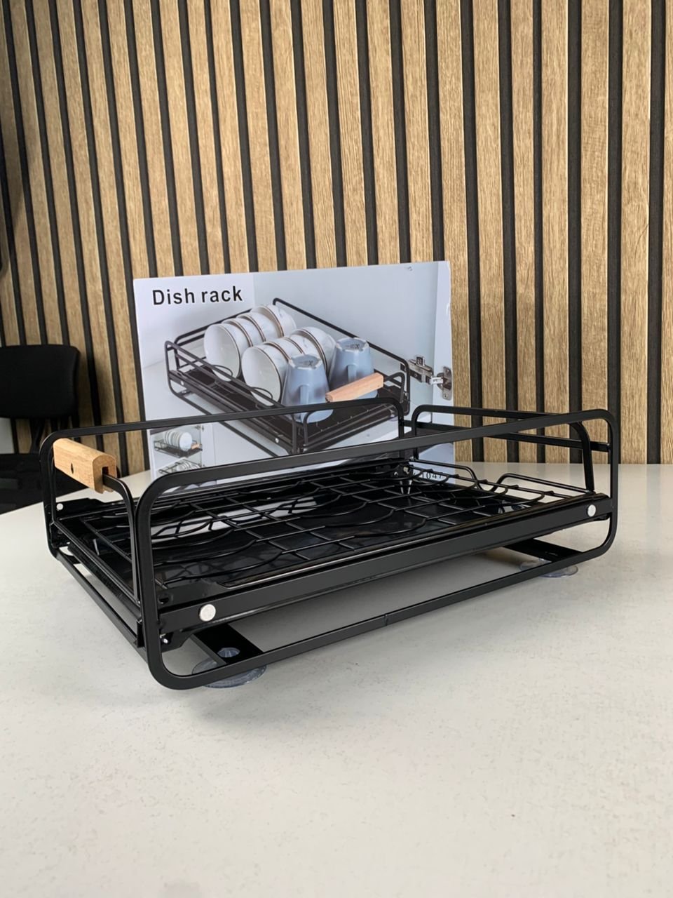 Égouttoir à vaisselle avec poignées en bois pour cuisine – منظم أواني داخل رف المطبخ