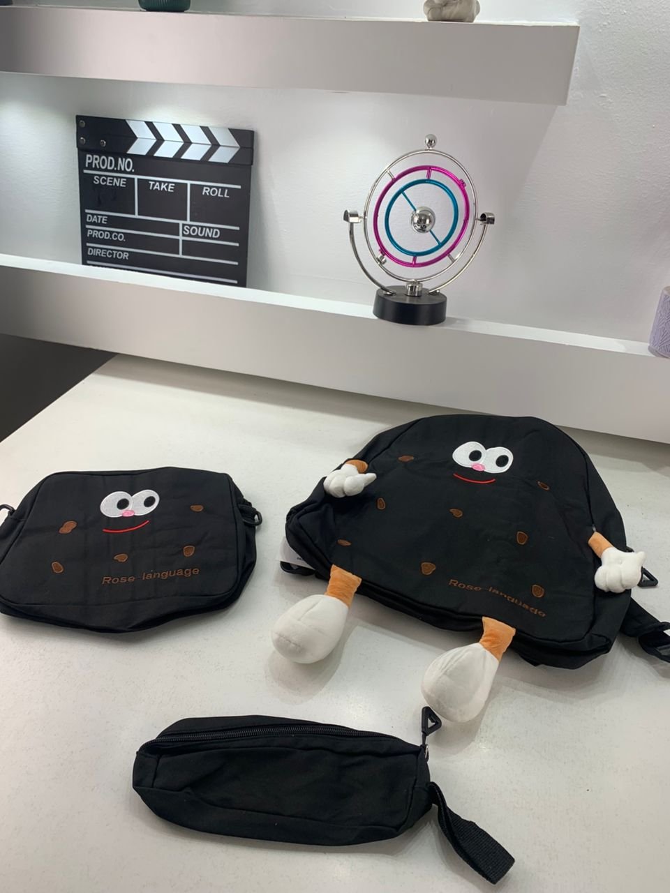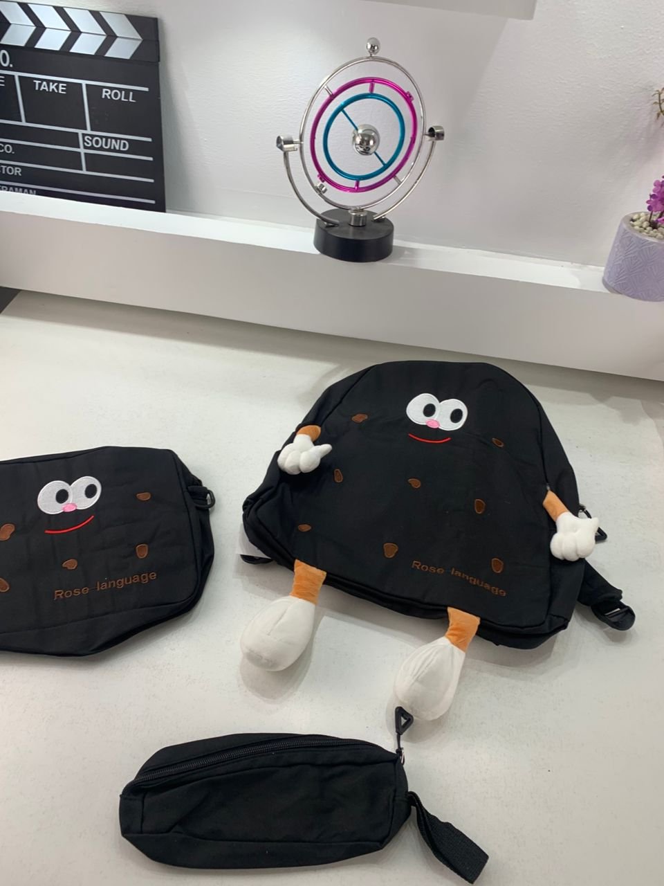 Ensemble de sacs d’école Kawai pour adolescents 3Pcs Language Noir – محفظة 3 قطع كاواي أسود