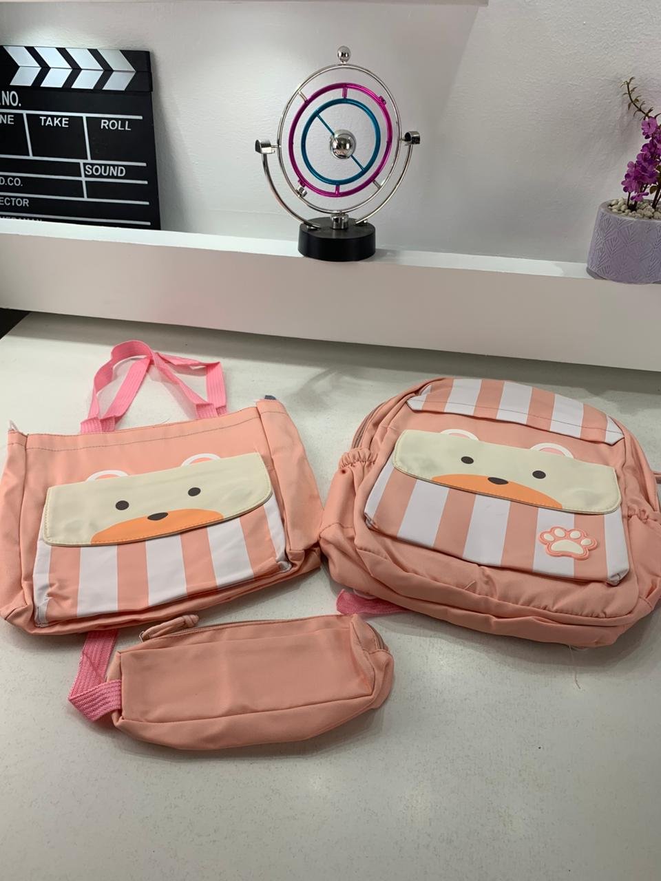 Ensemble de sacs d’école Kawai pour adolescents 3Pcs Ours Rose – محفظة 3 قطع كاواي وردي