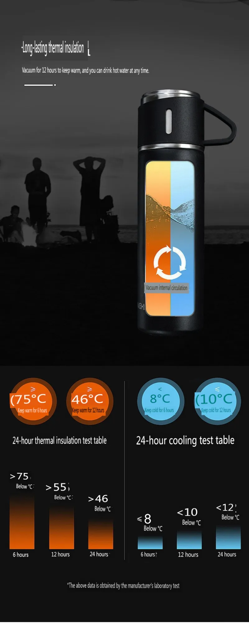 Ensemble Thermos avec 3 tasses thermique 500ml en acier inoxydable