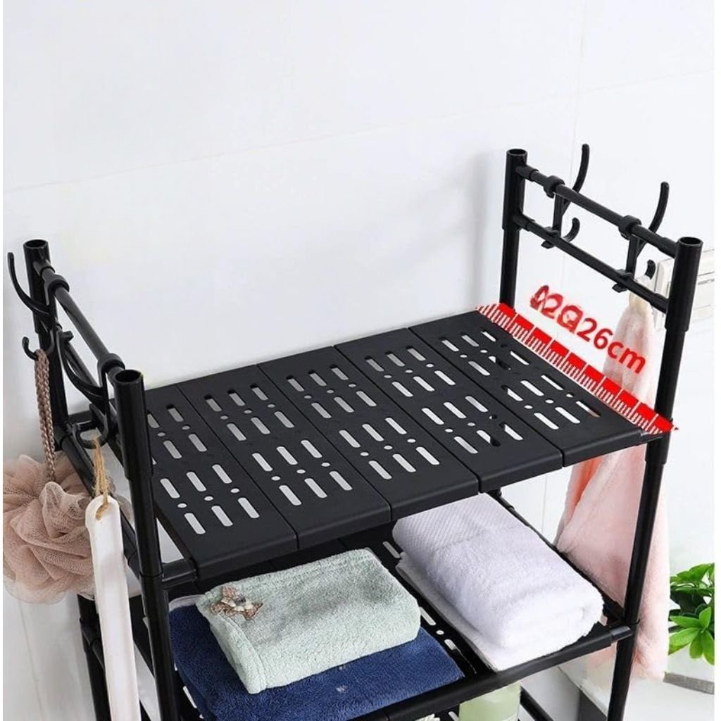 تحسين المساحة: صُمم هذا الرف ليوضع فوق المرحاض أو الغسالة، ليوفر حلاً تخزينياً رأسياً يُحسّن من استغلال المساحة المتاحة في حمامك.تصميم ثلاثي الطبقات: يتميز بثلاثة أرفف واسعة، تُتيح لك تخزين مختلف مستلزمات الحمام، ومنتجات التنظيف، أو غيرها من مستلزمات الحمام، مع الحفاظ عليها منظمة وسهلة الوصول إليها.خطافات عملية: مُزود بخطافات جانبية، يوفر هذا الرف مساحة إضافية لتعليق الإسفنج، والمناشف، أو غيرها من الملحقات، مما يُحسّن التخزين والتنظيم.هيكل متين: مصنوع من مواد عالية الجودة، يضمن الرف متانة وثباتاً مُعززين، ويدعم وزن أغراضك دون المساس بهيكله.سهولة التركيب: صُمم الرف لسهولة التركيب، ويأتي مع تعليمات واضحة وجميع الأدوات اللازمة، مما يُتيح لك إعداده بسرعة والبدء في استخدامه على الفور.حسّن تنظيم حمامك وكفاءته مع رف التخزين ثلاثي الطبقات هذا – حل عملي وأنيق لتحسين مساحتك.