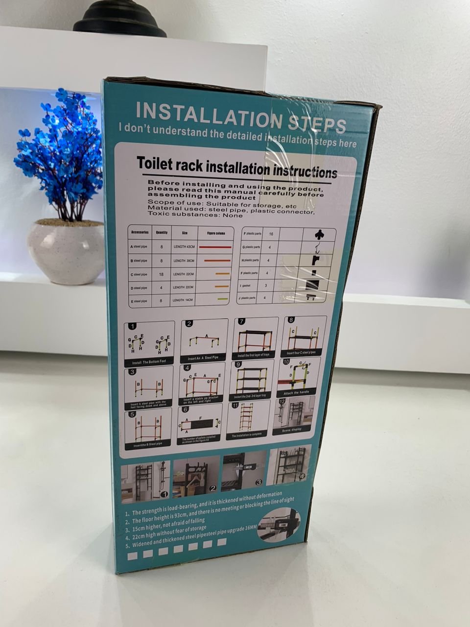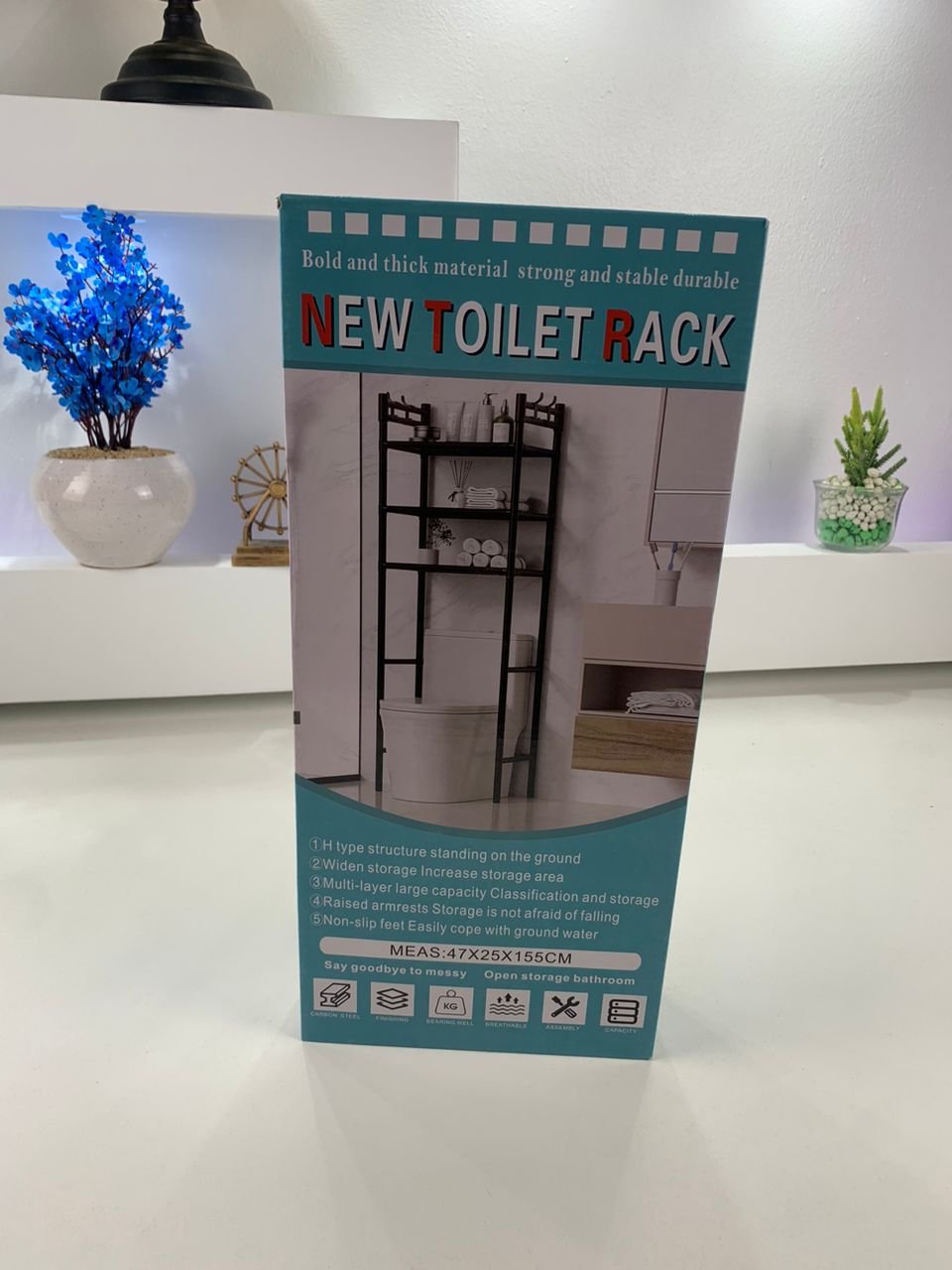 تصميم حديث وأنيق – تصميم حديث وأنيق : تم تصميم هذه الرفوف لتوضع فوق المرحاض، مما يتيح استغلال المساحة غير المستخدمة في حمامك. يتماشى تصميمها العصري مع أي نمط ديكور داخلي. بناء متين – بناء متين : مصنوعة من المعدن والبلاستيك عالي الجودة، مما يوفر متانة واستقرارًا كبيرين لدعم مستلزمات الحمام والأدوات الضرورية بأمان. توفير للمساحة – توفير للمساحة : بفضل أبعادها المدمجة، تعد مثالية للحمامات الصغيرة، حيث توفر مساحة تخزين إضافية دون ازدحام الأرضية. تركيب سهل – تركيب سهل : لا تحتاج إلى كهرباء أو أدوات معقدة للتركيب، حيث تُثبت بسهولة على الأرض لتكون حل تخزين عملي وسريع. متعدد الاستخدامات – متعدد الاستخدامات : مثالية لتنظيم المناشف، ومنتجات التجميل، وورق التواليت، وغيرها من مستلزمات الحمام، مع الاستفادة القصوى من المساحة العمودية. حسّن تنظيم حمامك مع هذا الرف العصري الذي يجمع بين العملية والجمال لنتيجة تنظيمية مثالية.