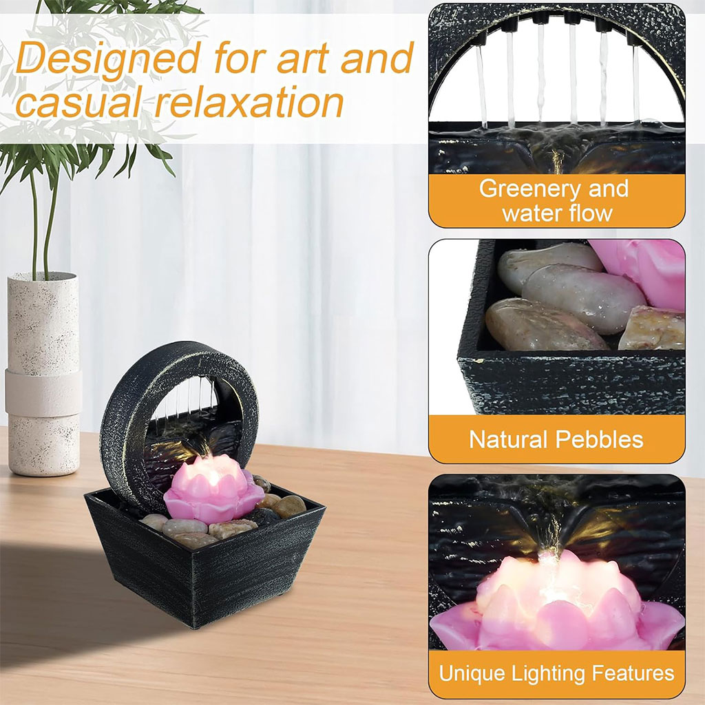 Fontaine à eau cascade avec éclairage LED pour décoration intérieure et ambiance V3