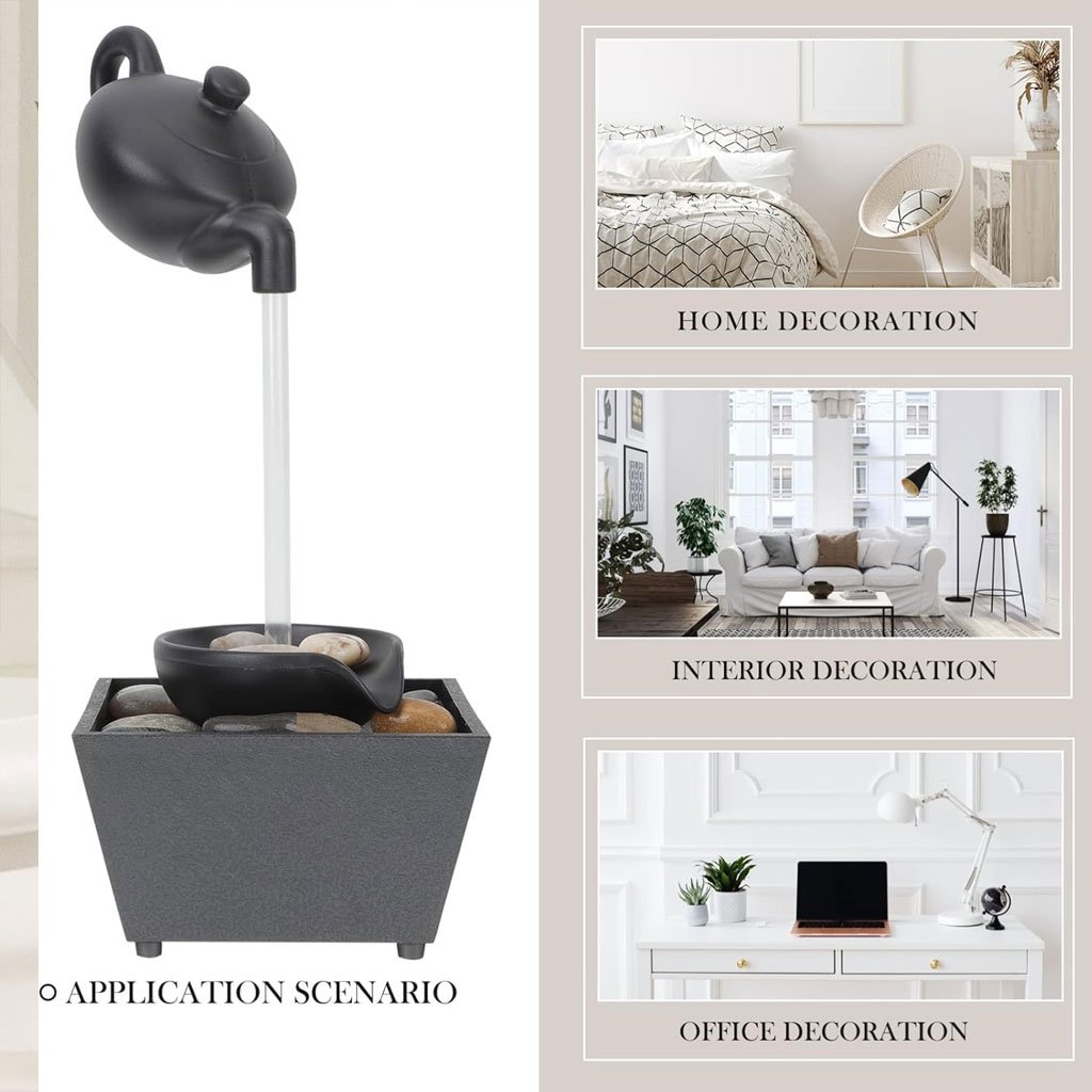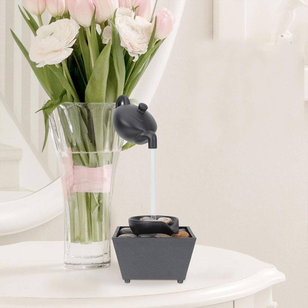 Fontaine théière flottante décoration de table avec lumières LED et pierres – نافورة مياه على شكل إبريق شاي عائم