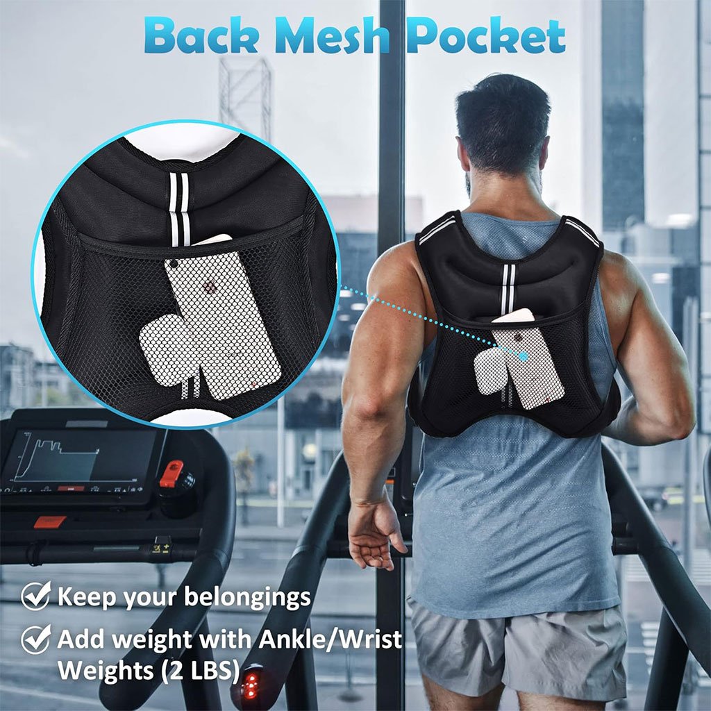 🔹 سترة تدريب بأوزان – أداء وراحة أثناء التمارينراحة معززة: أحزمة عريضة مبطنة ومواد ناعمة تقلل الاحتكاك لتدريبات أطول.ثبات وتناسب مثالي: مزودة بحزامين قابلين للتعديل وأشرطة عاكسة للرؤية الليلية.مواد عالية الجودة: خياطة مزدوجة وحشو من كرات الحديد المتينة لتوزيع الوزن بالتساوي.جيب شبكي خلفي: لتخزين الهاتف أو المفاتيح أو أوزان إضافية.ضمان رضا: ضمان استرجاع خلال 30 يوماً وضمان لمدة 12 شهراً.