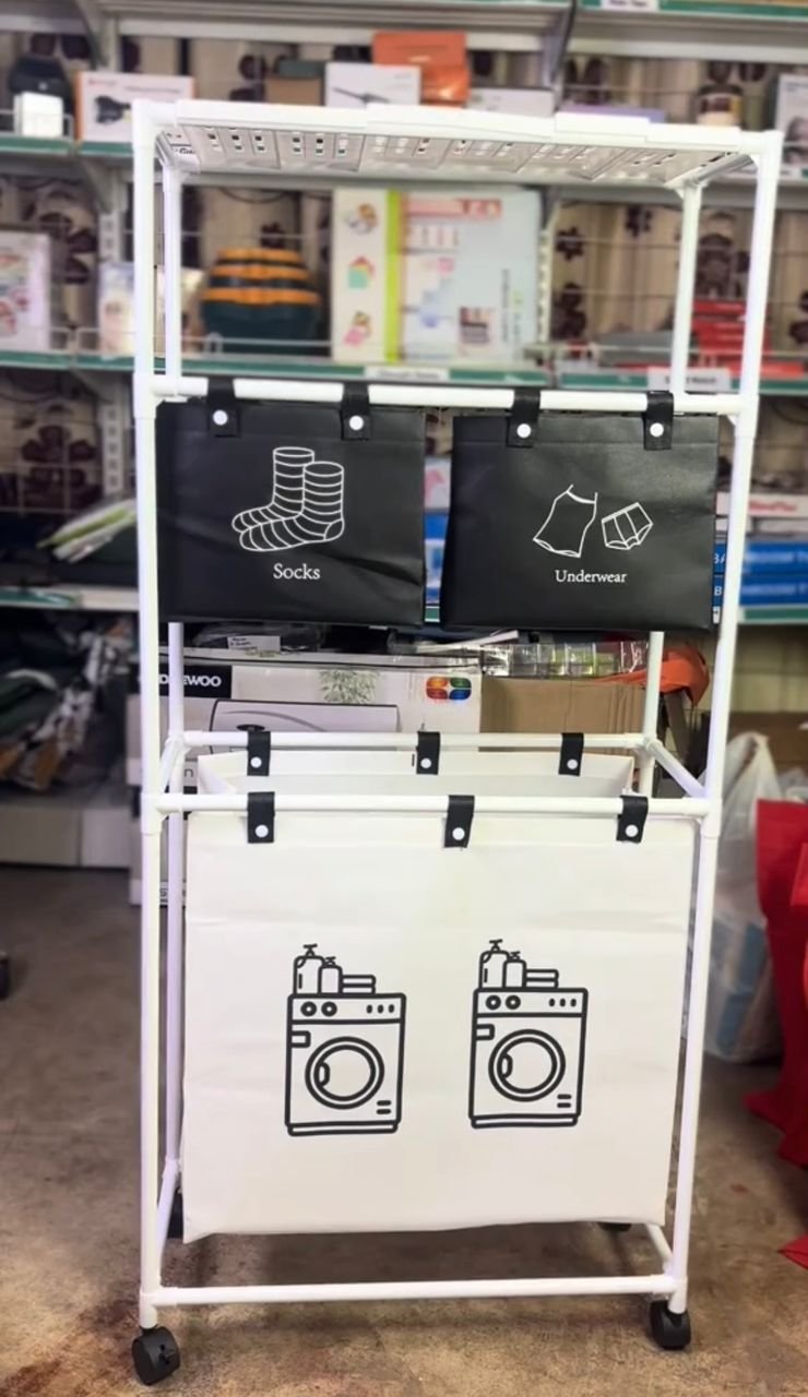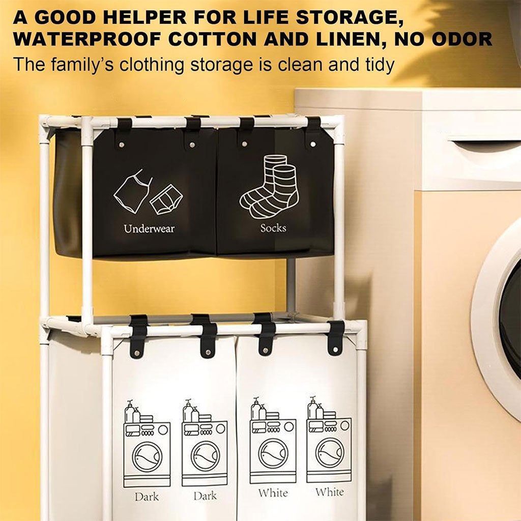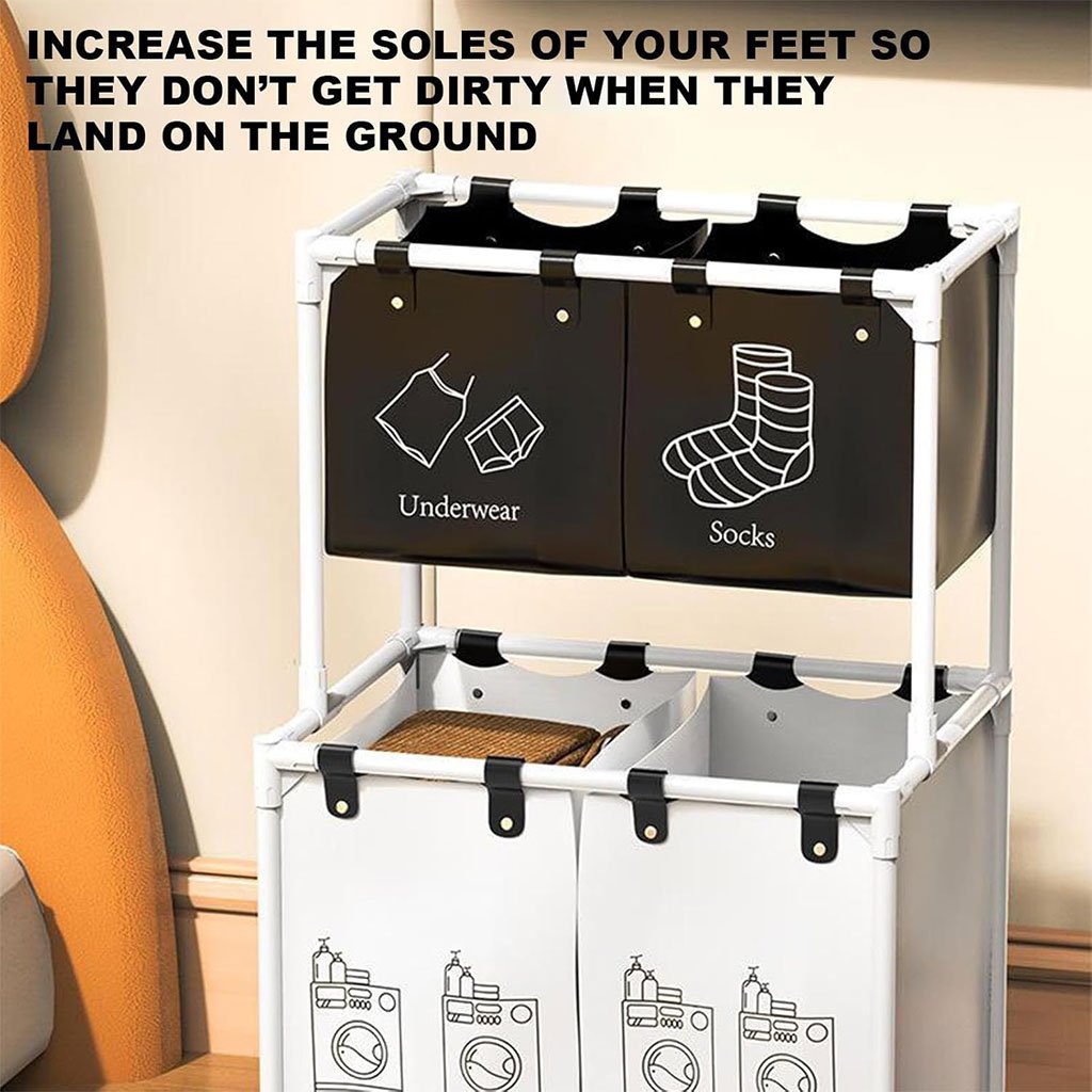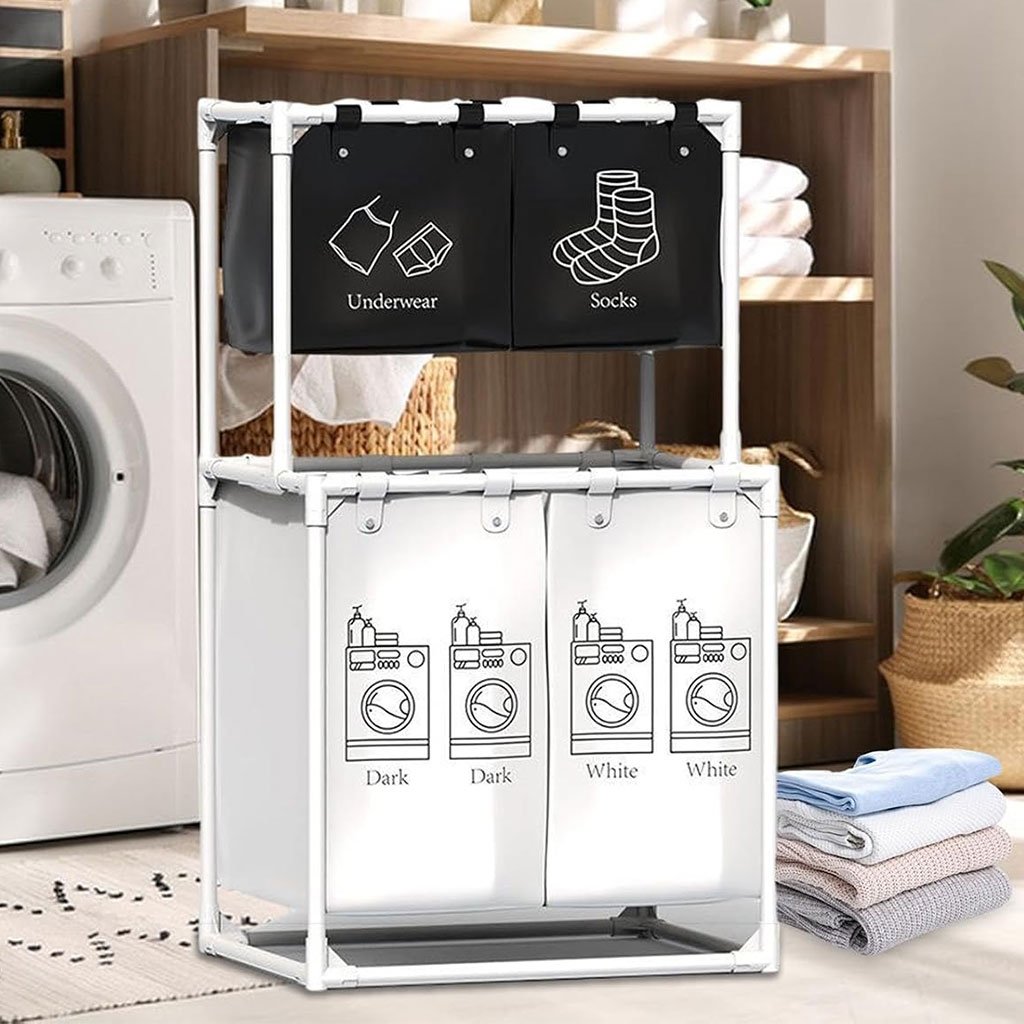 كمية Grand Panier à Linge 4 Compartiments pour Ranger les Vêtements –