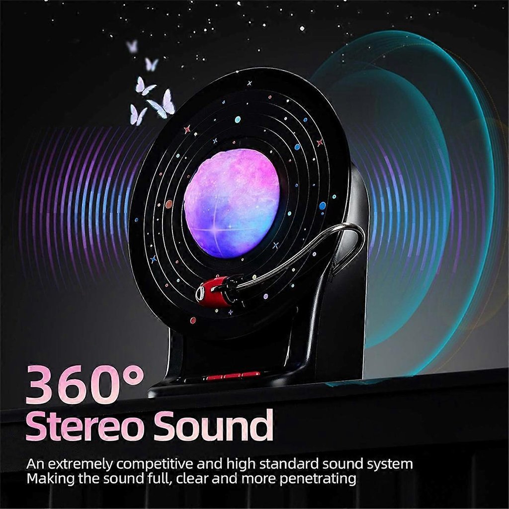 🌙 مصباح ليلي بتصميم مبتكريجمع هذا المصباح الليلي بين جمالية أسطوانة الفينيل وسحر سماء مرصعة بالنجوم المتلألئة، حيث يجسد مركبة فضائية تدور حول القمر في مشهد فني فريد. وبفضل تناغم الإضاءة مع الموسيقى، يخلق أجواءً استثنائية ولمسة روحانية هادئة، ليمنحك تجربة ليلية مختلفة تمامًا.✨ تأثيرات إضاءة محيطية مميزةقابل للتعديل على 3 مستويات للسطوع و 7 ألوان إضاءة مختلفة. مزود بمستشعر لمس علوي يسمح بتغيير الإعدادات بسهولة، كما تتفاعل الإضاءة تلقائيًا مع إيقاع الموسيقى. مثالي للمساعدة على النوم، خلق أجواء دافئة في غرفة الجلوس، القراءة في غرفة النوم، أو كضوء ليلي آمن للأطفال.🔊 صوت محيطي 360°مزود بأحدث شريحة Bluetooth 5.3، توفر هذه السماعة المدمجة قدرة صوتية قوية تصل إلى 10 واط. يضمن المضخم المدمج صوتًا غنيًا وواضحًا مع جهير عميق، بينما يتيح التصميم المحيط توزيع الصوت بدقة بزاوية 360 درجة لتجربة استماع غامرة.🔋 بطارية طويلة العمربفضل بطارية مدمجة عالية السعة 2000 مللي أمبير، يمكن للجهاز العمل حتى 15 ساعة متواصلة (حسب مستوى الصوت)، لتستمتع بالإضاءة والموسيقى دون انقطاع.