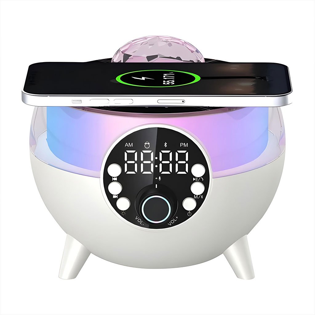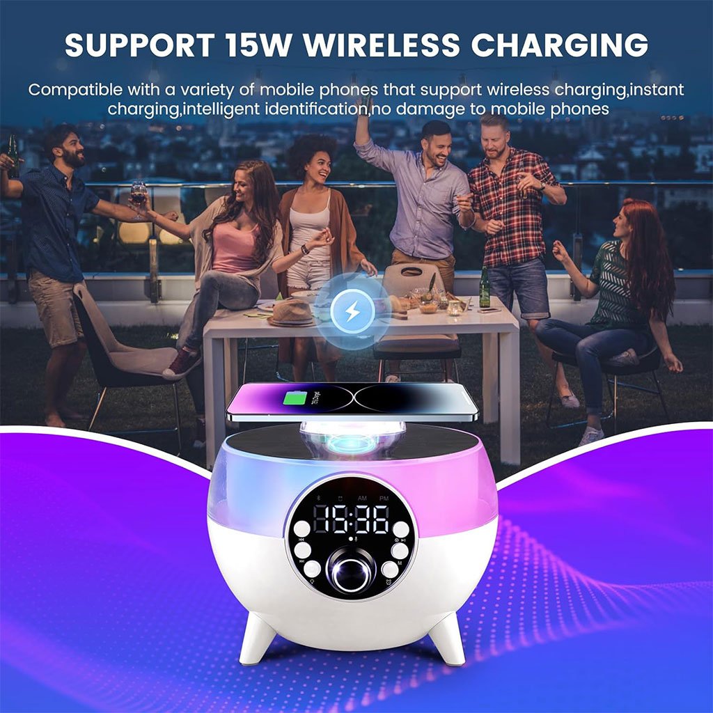 Haut-Parleur et Réveil LED d’Ambiance avec Chargeur Sans Fil 15W