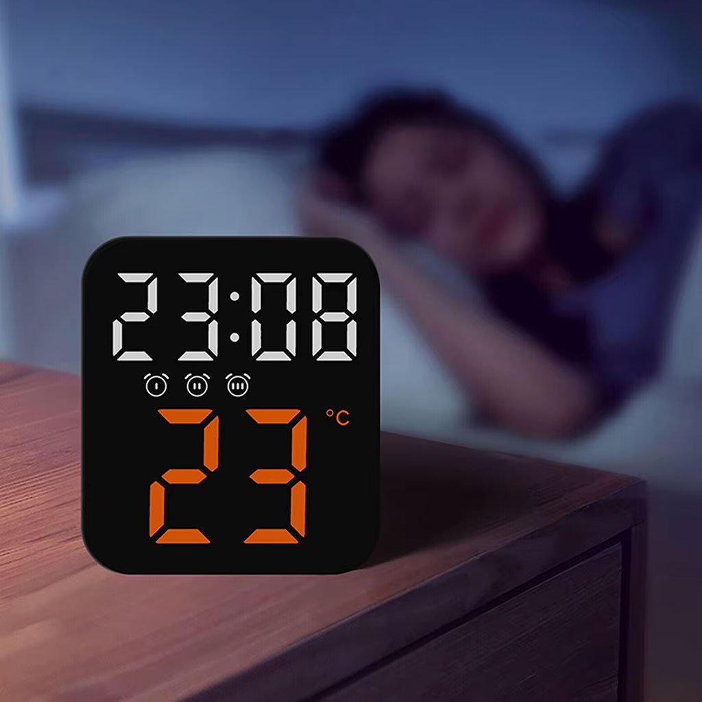 منبّه بدون استخدام اليدين: يمكن تفعيله باللمس أو الطرق الخفيف، يعمل بالصوت ويعمل بالبطاريات (غير مرفقة). تصميم مبتكر: شاشة رقمية كبيرة تعرض الساعة، التاريخ، درجة الحرارة، والمنبّه. يراقب درجة حرارة الغرفة للحفاظ على راحة المستخدم. متعدد الاستخدامات: مثالي للمنازل، الشركات، الصالات الرياضية، الصفوف الدراسية، واليوغا. يمكن وضعه على المكتب أو تعليقه كساعة حائط. ضبط متقدم للمنبّه: يمكنك إعداد 3 منبّهات مستقلة وتشغيلها أو إيقافها حسب الحاجة. إضاءة قابلة للتعديل: تحكم في سطوع الشاشة بدرجتين، مع ميزة التعتيم الليلي لضمان نوم هادئ.