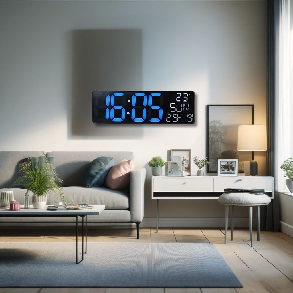 Horloge Numérique Murale et Table LED à Éclairage Bleu Inférieur – ساعة رقمية للحائط و المكتب بإضاءة سفلية زرقاء