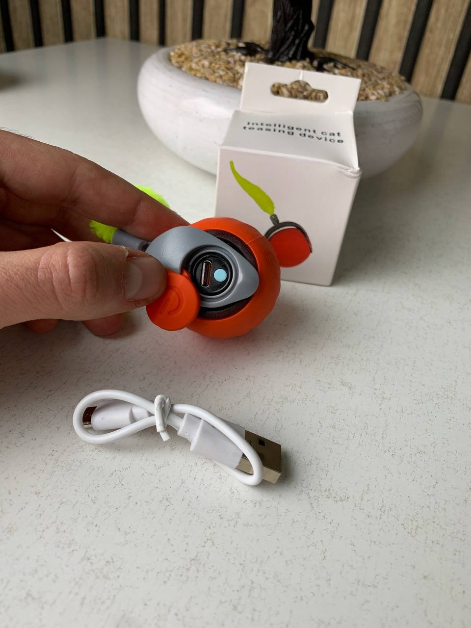 🐾 كرة ذكية تفاعلية للقطط – تسلية، حركة، وصيد ممتع! 🐱اجعل قطتك تقضي وقتًا ممتعًا وتفرغ طاقتها بطريقة صحية مع الكرة الذكية التفاعلية التي تحاكي حركة الفريسة وتشجع الغريزة الطبيعية للصيد لدى القطط.🎯 المميزات الرائعة :🐭 تصميم يحاكي الفريسة : حركات غير منتظمة وذيول قابلة للتبديل تجعل الكرة تبدو وكأنها فريسة حقيقية، مما يحفّز غريزة الصيد لدى القطط.⚙️ سرعتان للّعب : يمكنك اختيار بين السرعة البطيئة أو العالية لتناسب القطط الصغيرة أو النشيطة، مع إمكانية التبديل بضغطة زر واحدة.🤖 أنماط تفاعل ذكية :الوضع العادي : تتوقف تلقائيًا بعد 5 دقائق.الوضع الذكي : تعمل عند استشعار الحركة. ⏱️ مثالية للترفيه المستمر دون الحاجة للمراقبة الدائمة.🔋 بطارية طويلة الأمد : بطارية قابلة للشحن عبر USB بسعة 150 مللي أمبير، تمنحك 90 دقيقة من اللعب المتواصل في كل شحنة.🔄 حركة غير متوقعة : سطح مموج وتغييرات عشوائية في الاتجاه تحفّز فضول القطة وتبقيها منشغلة لساعات.💪 مصنوعة من مادة ABS متينة : خفيفة الوزن ومقاومة للصدمات لتتحمل قفزات القطط وحماسها.📏 حجم مثالي : قطر الكرة 5 سم فقط – مناسبة للمساحات الصغيرة وملائمة للقطط المنزلية التي تحب المطاردة واللعب.⚡ شحن سهل وسريع : يأتي كابل USB مرفق لإعادة الشحن بسهولة بين جلسات اللعب.😻 امنح قطتك تجربة لعب ذكية وممتعة تحافظ على نشاطها وسعادتها طوال اليوم!