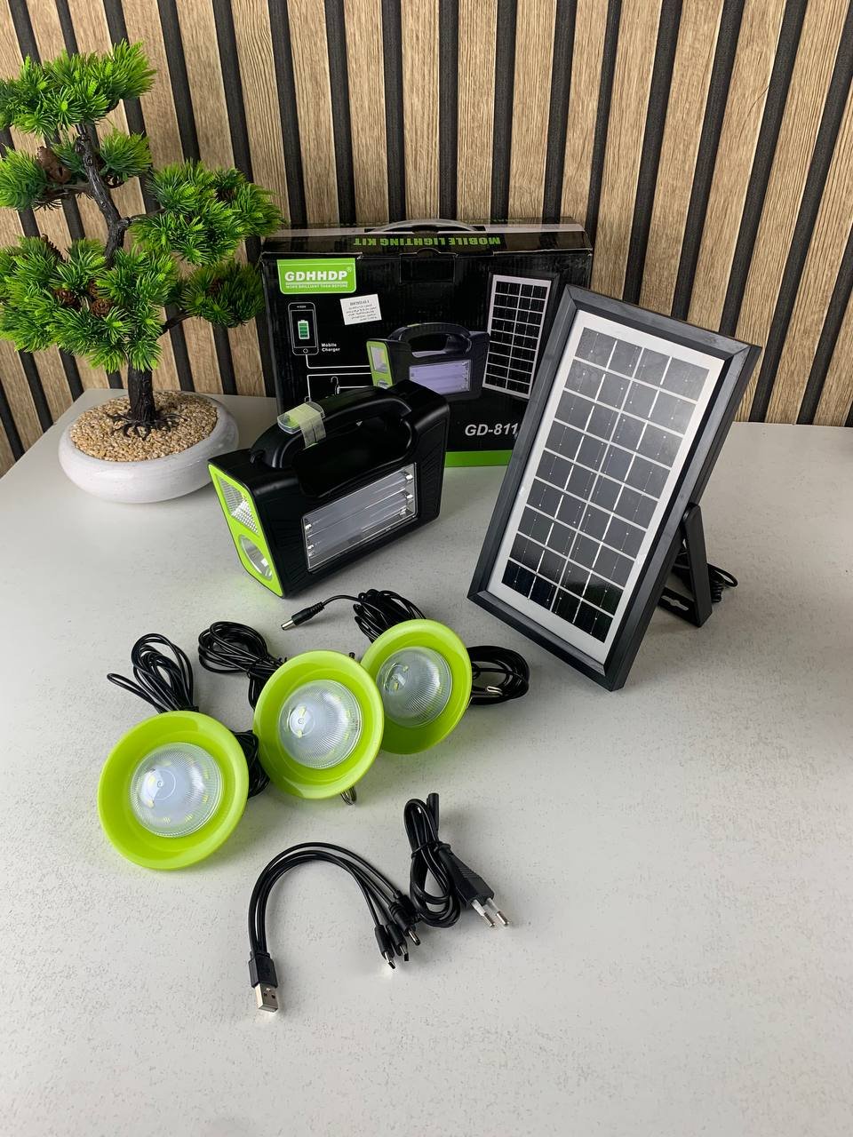 Kit Panneau Solaire portable avec Torche LED Rechargeable et 3 Lampes – طقم مصباح يعمل بالطاقة الشمسية