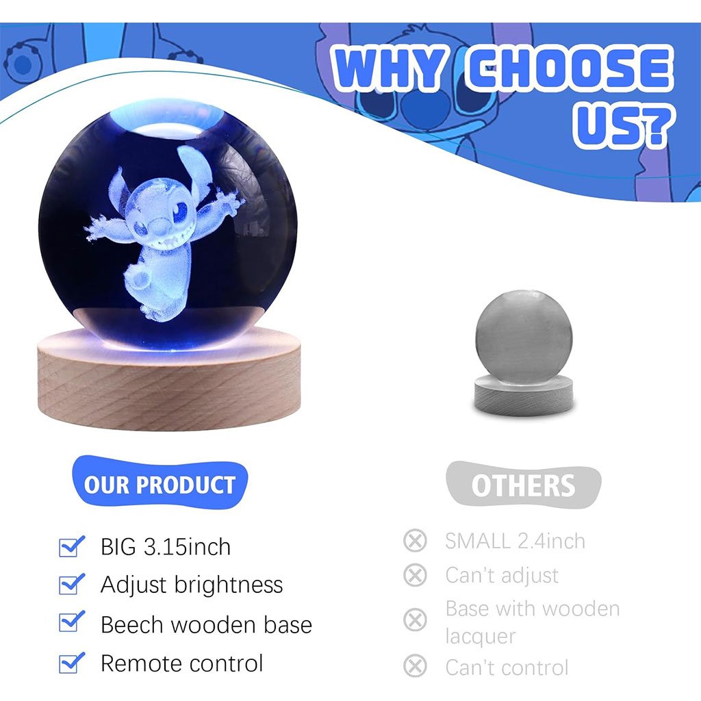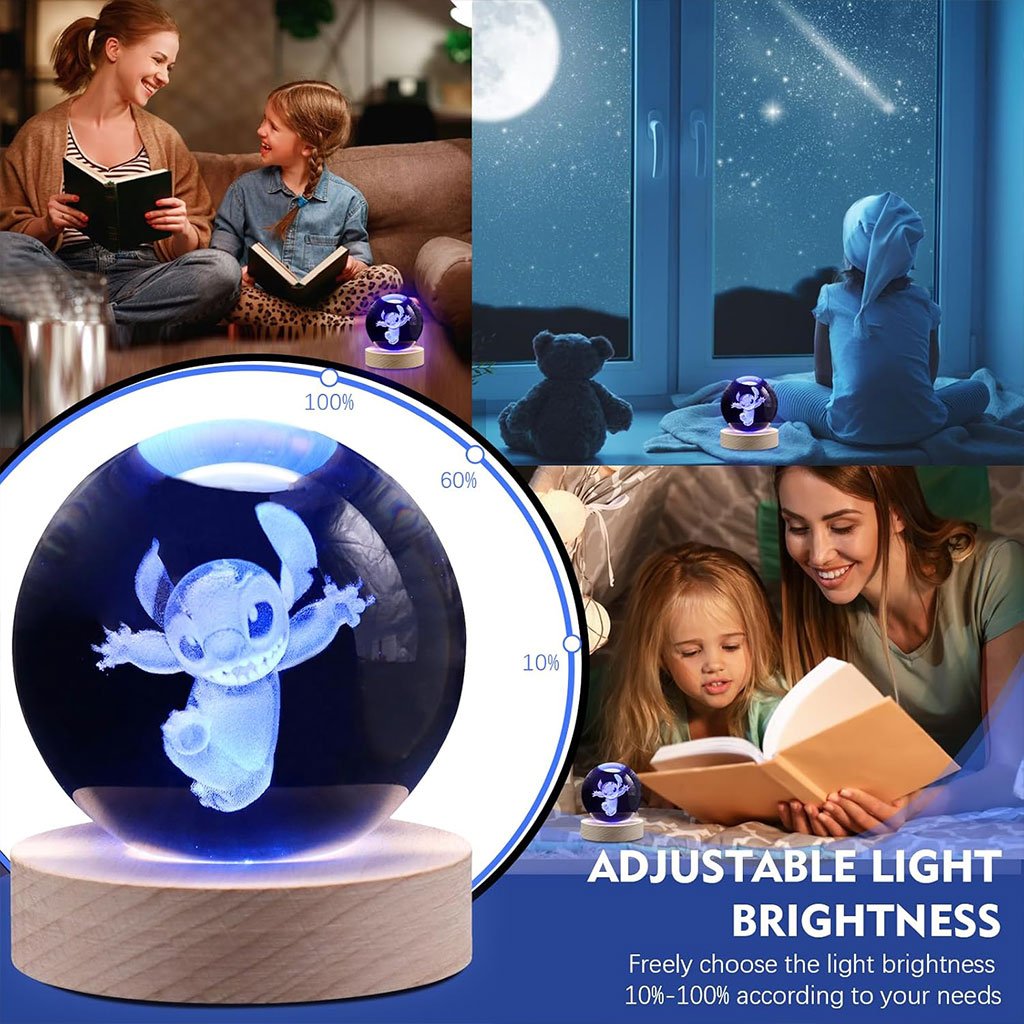 Lampe boule de projection en cristal 3D Stitch