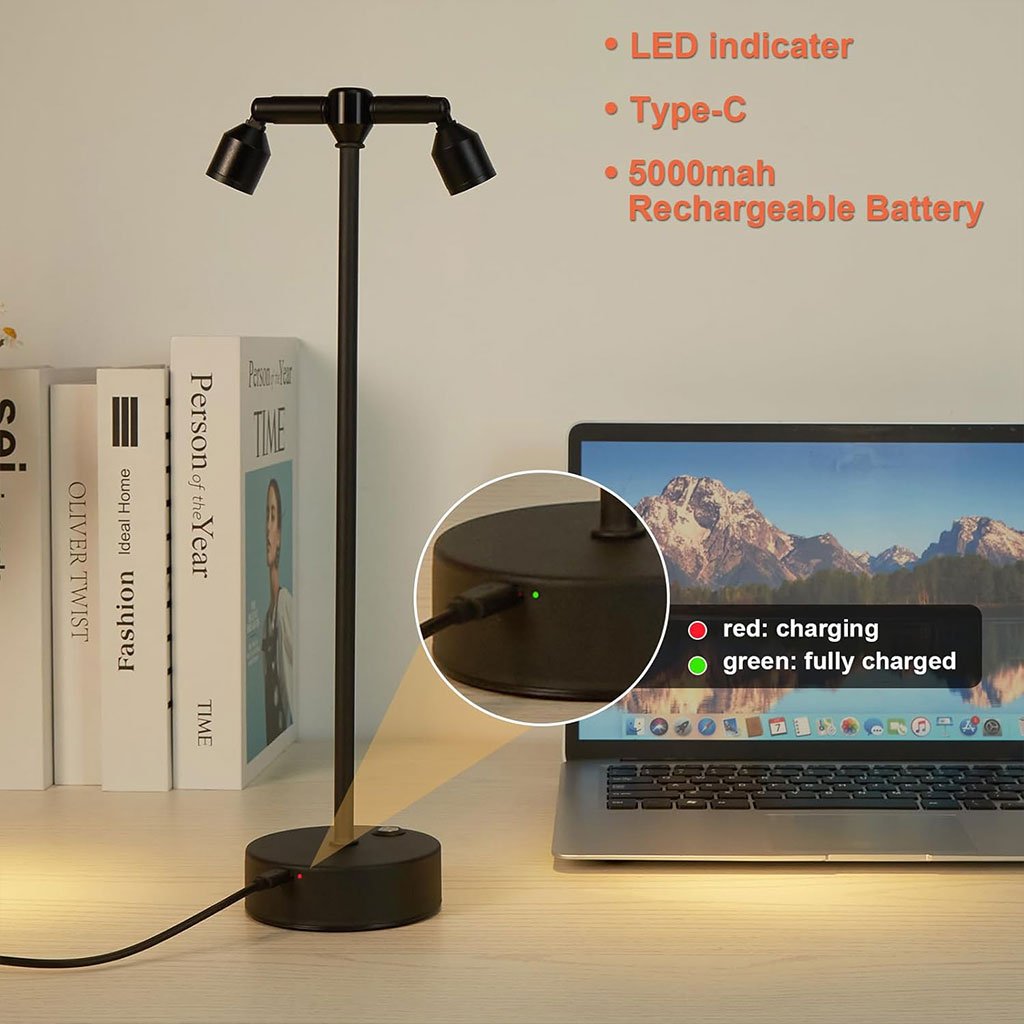 Lampe de bureau LED rétro à double tête rotative à 360 degré – مصباح مكتب بعدة أوضاع إضاءة