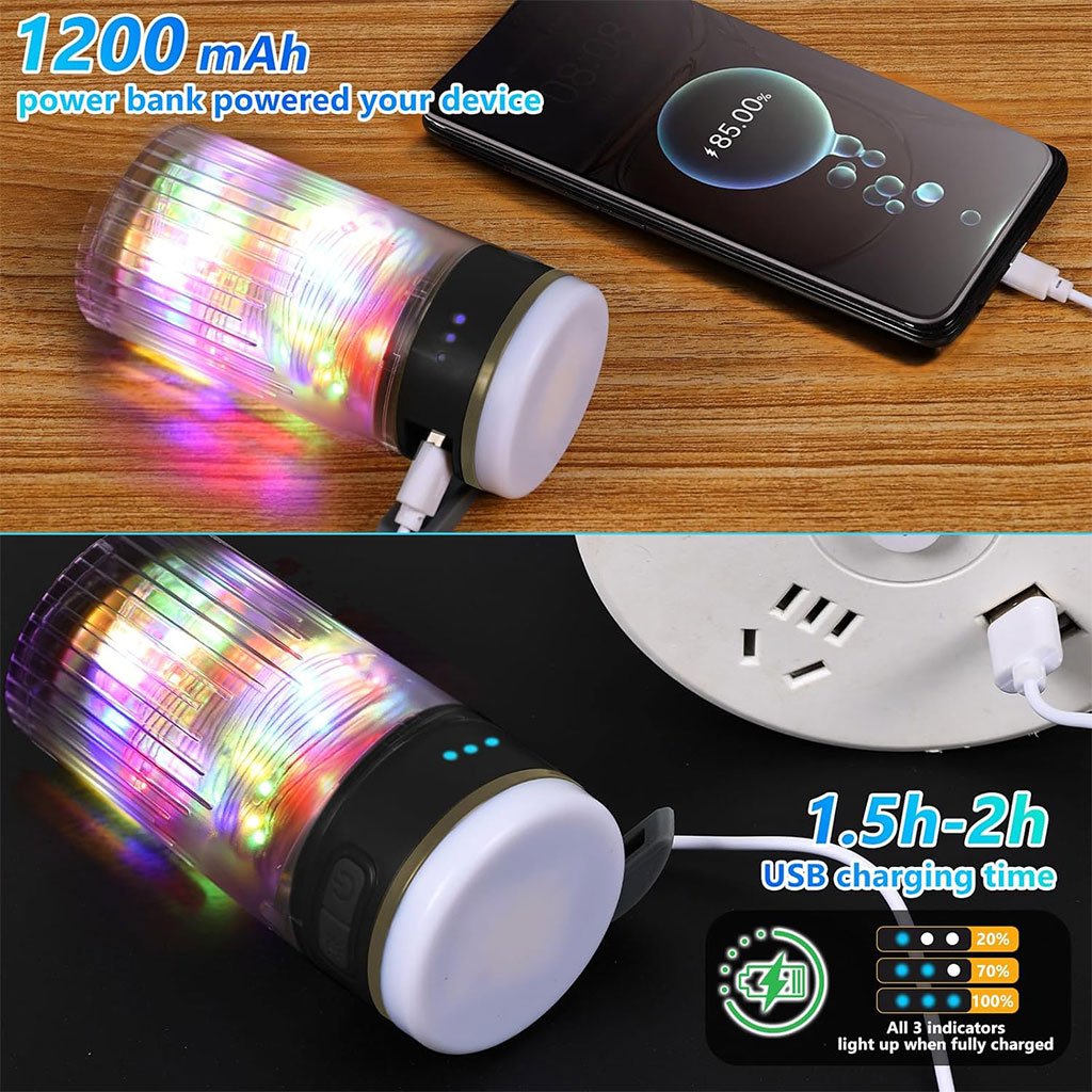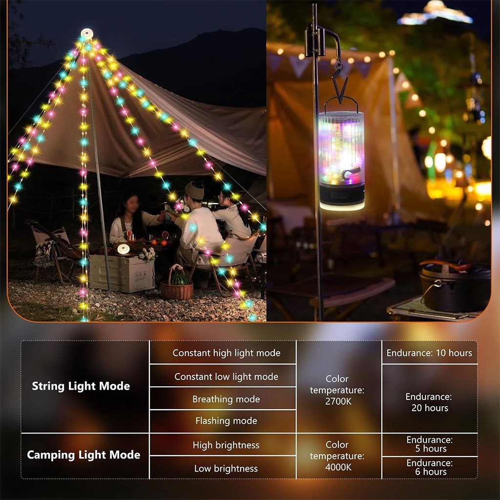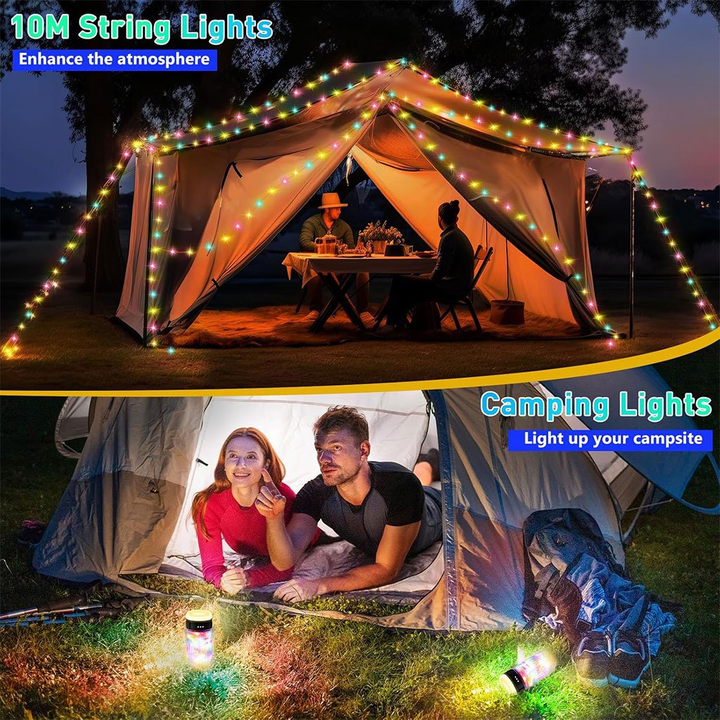 Lampe de Camping Enroulable avec Guirlande Lumineuse 10m – مصباح تخييم محمول وقابل للشحن