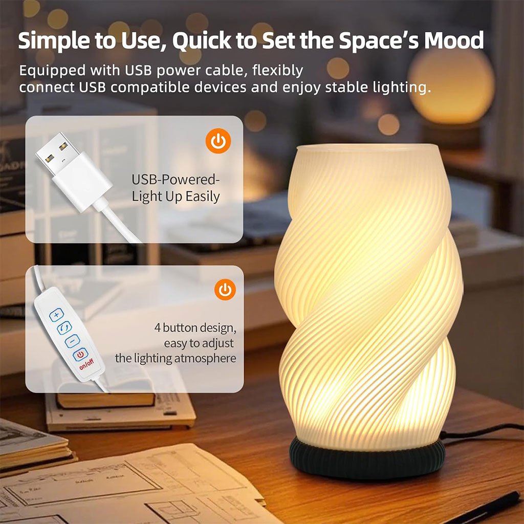 💡 إضاءة ذكية بأجواء مخصصةتوفّر المصباح 3 أوضاع لونية و 9 مستويات للسطوع لتصميم الإضاءة المثالية حسب حاجتك. سواء كنت تبحث عن:ضوء أبيض بارد وقوي للتركيز والعملضوء طبيعي مريح للاستخدام اليوميأو ضوء دافئ ناعم للاسترخاءفهذا المصباح يتكيّف معك بسهولة. ✨ بفضل خاصية حفظ الإعدادات، يتم تذكّر آخر وضعية استخدمتها دون الحاجة لإعادة الضبط في كل مرة، ليغنيك عن استخدام عدة مصابيح مختلفة.🌿 ديكور مكتبي أنيق وفنيمصنوع بتقنية الطباعة ثلاثية الأبعاد (3D)، يجمع هذا المصباح بين الإضاءة العملية والجمال الفني العصري. مزود بـ حامل نباتات مناسب للزهور الطبيعية أو المجففة، حيث تمتزج الإضاءة مع جمال النباتات لتضفي لمسة فريدة على: غرفة النوم، الصالون، المكتب أو أي مساحة داخلية.♻️ مواد صديقة للبيئةالغطاء مصنوع من PLA (بلاستيك مستخرج من سيقان الذرة)، مما يقلل الاعتماد على البلاستيك التقليدي ويمنح المصباح:ألوانًا طبيعيةملمسًا فريدًامظهرًا أنيقًا ومنحنيات جذابةمثالي كمصباح ليلي، مصباح طاولة، مصباح لغرفة الطلبة أو إضاءة أجواء لغرفة الطعام.🔌 استخدام سهل وطاقة USBمصباح طاولة صغير الحجم مزود بزر تحكم بسيط يناسب جميع الأعمار. يعمل عبر كابل USB ويمكن توصيله بسهولة بـ:الكمبيوترالبطارية الخارجية (Power Bank)أي مصدر طاقة USBمثالي للاستخدام في المنزل، السكن الجامعي أو أثناء السفر.🧽 غطاء قابل للإزالة لسهولة التنظيفيأتي المصباح بغطاء قابل للفصل، ما يجعل تنظيف الغبار والأوساخ سهلًا وسريعًا. مصباح نظيف = إضاءة أنعم + أجواء أكثر راحة وتنظيمًا يساعدك على الاسترخاء بعد يوم طويل من العمل أو الدراسة ويعزز إحساسك بالراحة والهدوء.✨ مصباح يجمع بين الإضاءة الذكية، التصميم الفني، والاستدامة البيئية ليمنحك تجربة إضاءة مختلفة تمامًا.