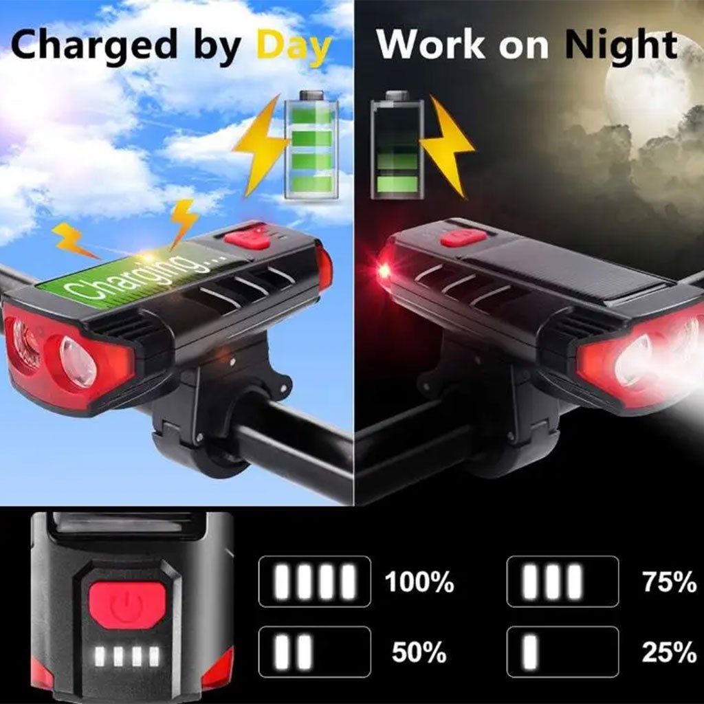 Lampe d’éclairage solaire pour vélo et trottinette avec sonnette et alarme – مصباح دراجات يعمل بالطاقة الشمسية