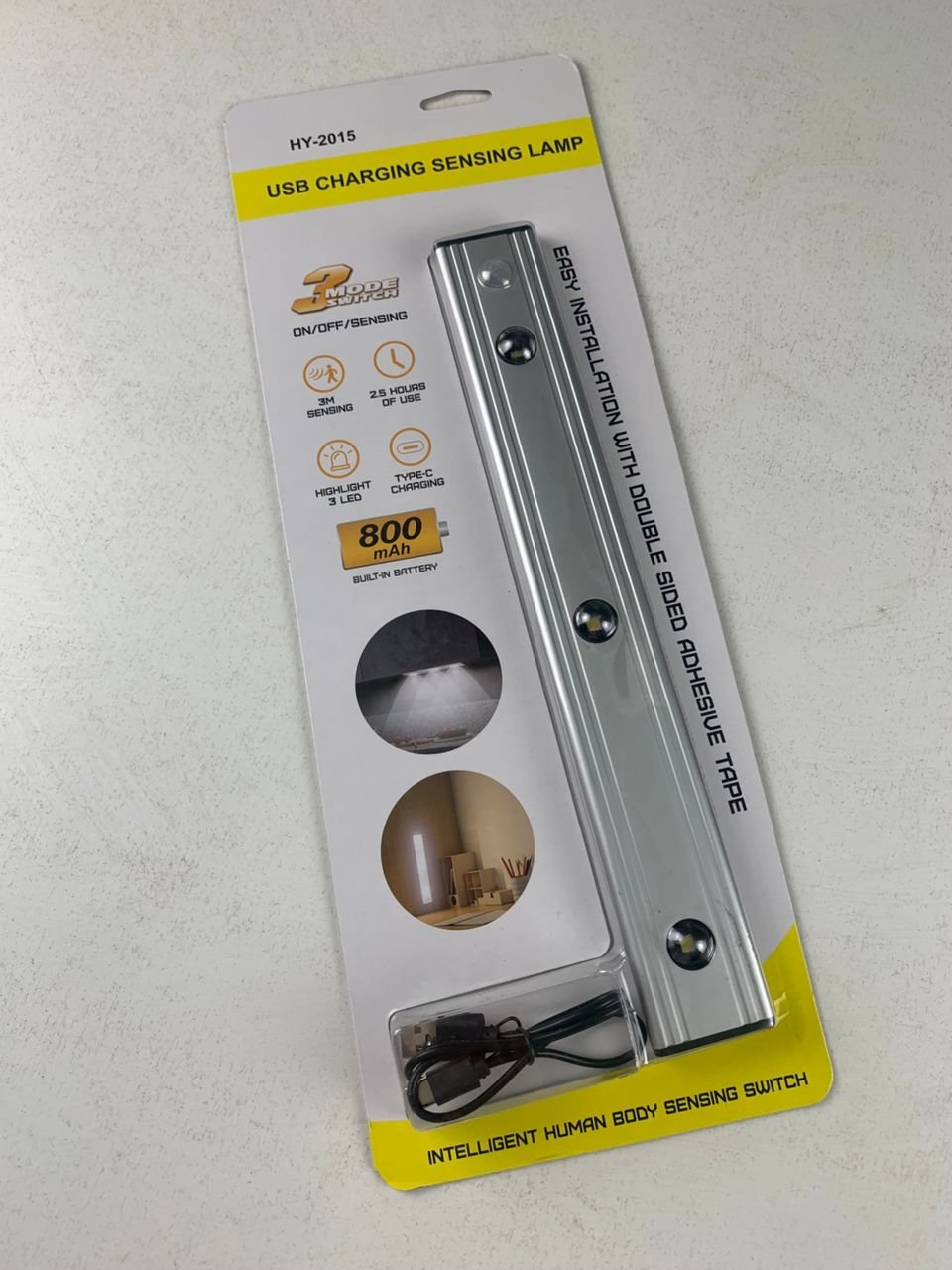 💡 مصباح LED مبتكر مزوّد بمستشعر حركة – تصميم أنيق وأداء عملي في كل ركن من منزلك!استمتع بإضاءة ذكية وجمالية فائقة بفضل مصباح HY-2015، المصمم بأحدث التقنيات لتوفير إضاءة فعالة، قابلة للتعديل، وسهلة التركيب في مختلف أماكن الاستخدام.✨ أبرز الميزات:🌄 تصميم إضاءة فريد “بتأثير التل” يُصدر المصباح شعاعًا منحنيًا يحاكي شكل التلال، مما يضفي لمسة فنية وجمالية خاصة، تختلف حسب مكان التركيب (دولاب، رف، مطبخ، إلخ).🎨 3 ألوان ودرجة سطوع قابلة للتعديلأبيض دافئ (3000K)أبيض محايد (4500K)أبيض بارد (6500K) مع إمكانية التحكم في شدة الإضاءة من 5% حتى 100% (من 100 إلى 300 لومن)، لتناسب مختلف الأوقات والاحتياجات.⚙️ 3 أوضاع ذكية للاستخدام:وضع مستشعر الحركة: يضيء تلقائيًا عند اكتشاف حركة في نطاق 3 أمتار بزاوية 120° في الظلام، ويُطفأ بعد 25 ثانية.وضع التشغيل المستمر: مثالي للاستخدام كمصباح يدوي أو عند الحاجة إلى إضاءة دائمة.وضع الإيقاف الكامل.🔋 بطارية قوية بسعة 800mAh قابلة لإعادة الشحنتعمل من 6 إلى 10 ساعات في وضع الإضاءة المستمرةتعمل من 1 إلى 2 شهر في وضع مستشعر الحركةقابلة للشحن خلال 3 ساعات عبر كابل USB-C (أكثر سرعة وفعالية)🧲 تركيب سهل بدون أدوات مزود بمغناطيسات قوية تلتصق بسهولة بأي سطح معدني، أو يمكن تركيبه على الأسطح غير المعدنية باستخدام لوح معدني لاصق مرفق. مثالي للمطبخ، الخزانة، غرفة النوم، الحمام، الدرج، الممرات، والمرآب.📦 تفاصيل المنتج:✅ الموديل: HY-2015✅ الأبعاد: 30 × 4 × 1.1 سم✅ الوزن: 200 غرام✅ البطارية: ليثيوم بوليمر مدمجة✅ عدد المصابيح: 3✅ الألوان: أبيض بارد✅ الستايل: عصري✅ الاستخدامات: المطبخ – الدولاب – الأدراج – السلم