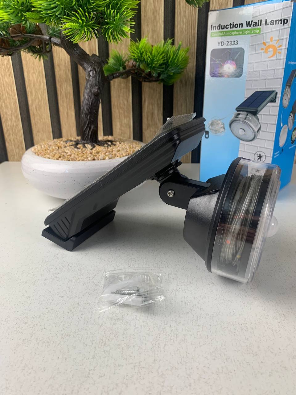 Lampe murale solaire avec détecteur de mouvement et guirlande lumineuse – مصباح خارجي بالطاقة الشمسية