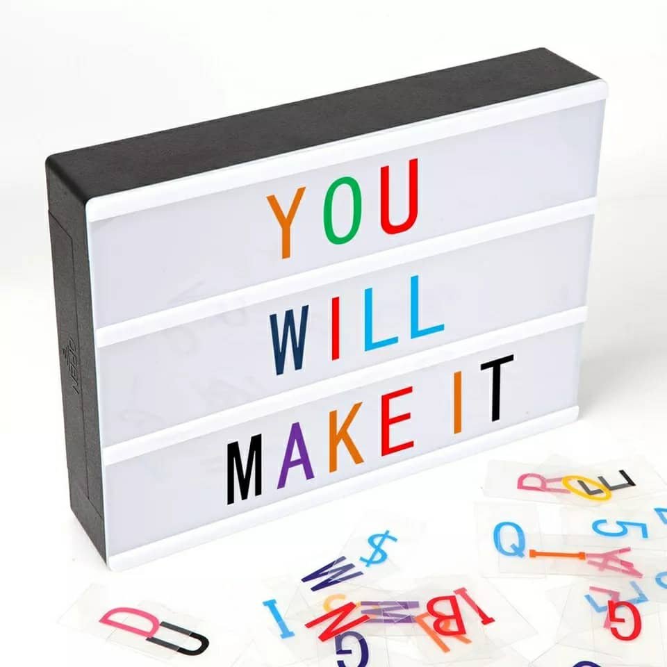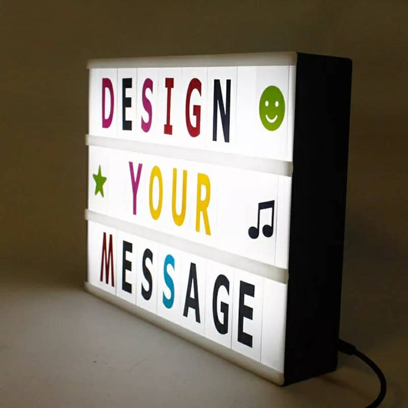 مصباح صندوق LED مع أحرف ملوّنةنوع الإضاءة: مصباح ليلي / مصباح طاولة 5 فولتالجهد: DC5Vالقدرة: 2 واطالبطارية: يعمل ببطاريات AA (غير مرفقة) أو كابل USBعدد الأحرف والرموز: 96 قطعةلون الأحرف والرموز: ملوّنمفتاح تشغيل/إيقاف: نعمالمقاسات:حجم A5: 21×15×5 سمبطاقات A5: 24×45 ممالاستخدامات: ديكور مثالي وغرض هدايا لغرف النوم، غرف الأطفال، غرف البنات، المطاعم، المتاجر، واجهات العرض، الحفلات، أعياد الميلاد، العطل والمهرجانات.محتوى العبوة: صندوق إضاءة LED ×1 ، بطاقات (96 قطعة) ×1