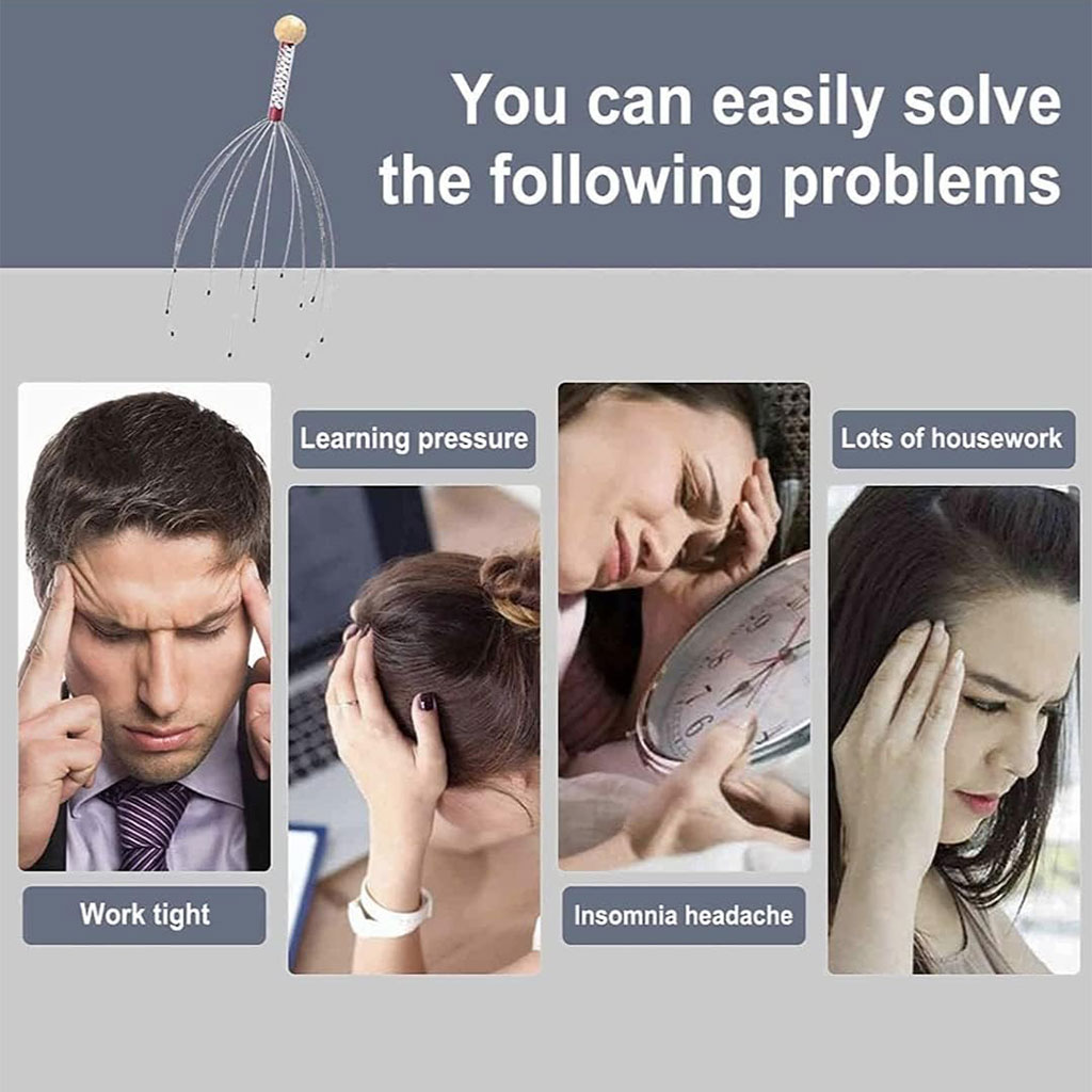 مدلك فروة الرأس:استرخاء عميق وتقليل التوتر: يحتوي على كرات مطاطية تنزلق بلطف على فروة الرأس، ما يمنحك شعورًا مبهجًا في كل مرة تستخدمه.يعزز الدورة الدموية: طريقة طبيعية وممتعة لتخفيف الكثير من الآلام والانزعاج.سهل الاستخدام ومحمول: رؤوس مرنة تتكيف مع شكل الرأس، وحجمه الصغير يسمح بأخذه في أي مكان.ليس لفروة الرأس فقط: يمكن استخدامه لتدليك الركبتين والكاحلين والمرفقين وتحسين الدورة الدموية واسترخاء العضلات.علبة هدية رائعة وضمان رضا: يأتي في علبة هدية جميلة، وإذا لم تكن راضيًا، نعيد لك أموالك بالكامل.