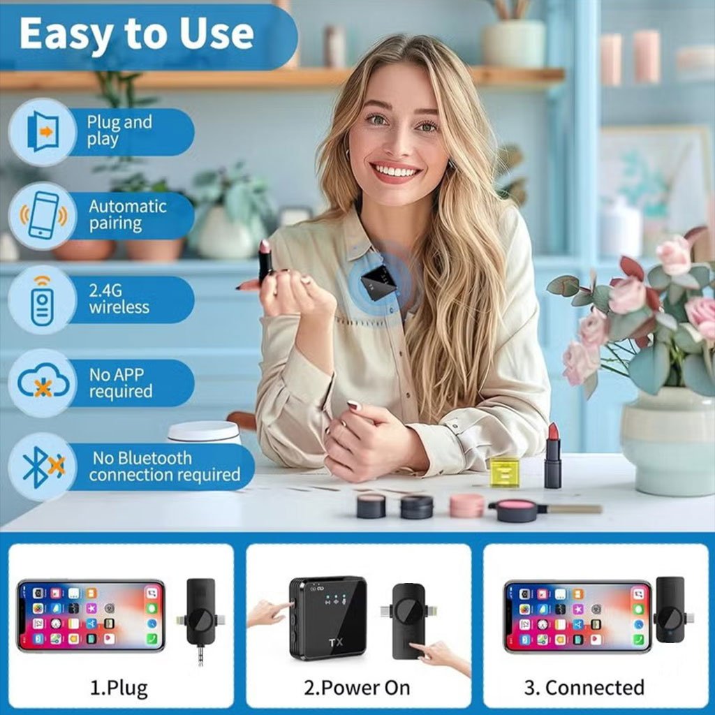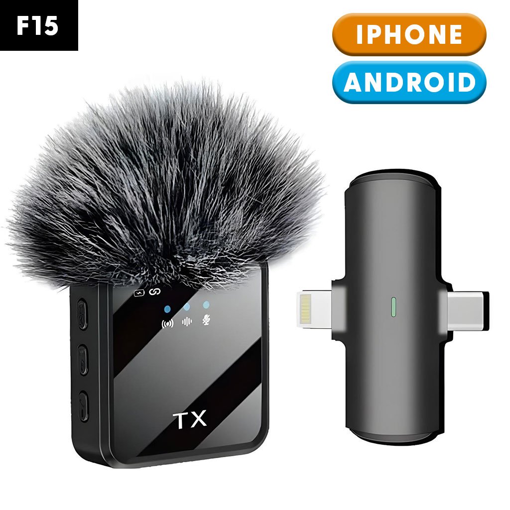 Microphone Sans Fil Professionnel 2en1 pour iPhone et Android F15 – ميكروفون لاسلكي متعدد المنافذ