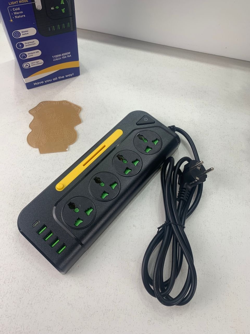 ⚡🔌 Multiprise متعددة الوظائف مع منافذ USB وإضاءة LED 🔌⚡حوّل مكتبك أو منزلك لمساحة عملية وأكثر أمانًا مع هذه القاعدة الكهربائية الذكية، المصممة لتلبية احتياجاتك العصرية. تجمع بين القوة، الراحة، والأمان لتكون الرفيق المثالي في حياتك اليومية.✨ المميزات الرئيسية :🔋 قدرة قصوى 4000 واط : مناسبة للأجهزة ذات الاستهلاك العالي للطاقة.⚡ 4 منافذ USB مدمجة : 3 منافذ USB-A + منفذ Type-C مع شحن سريع حتى 3.1A.🔗 مصنوعة من النحاس الخالص 100% : توصيل كهربائي ممتاز مع عمر أطول.💡 إضاءة LED بثلاثة أوضاع : ضوء بارد – دافئ – طبيعي لتناسب أجواءك.🔘 مفاتيح تشغيل فردية : تحكم مستقل بكل مقبس لزيادة الأمان وتوفير الطاقة.🔒 حماية من الحمل الزائد : أمان كامل لأجهزتك الإلكترونية.🌍 مقابس عالمية : متوافقة مع معظم المقابس الدولية.🔄 تيار كهربائي من 10A حتى 16A : مرونة عالية لتشغيل عدة أجهزة في وقت واحد.
