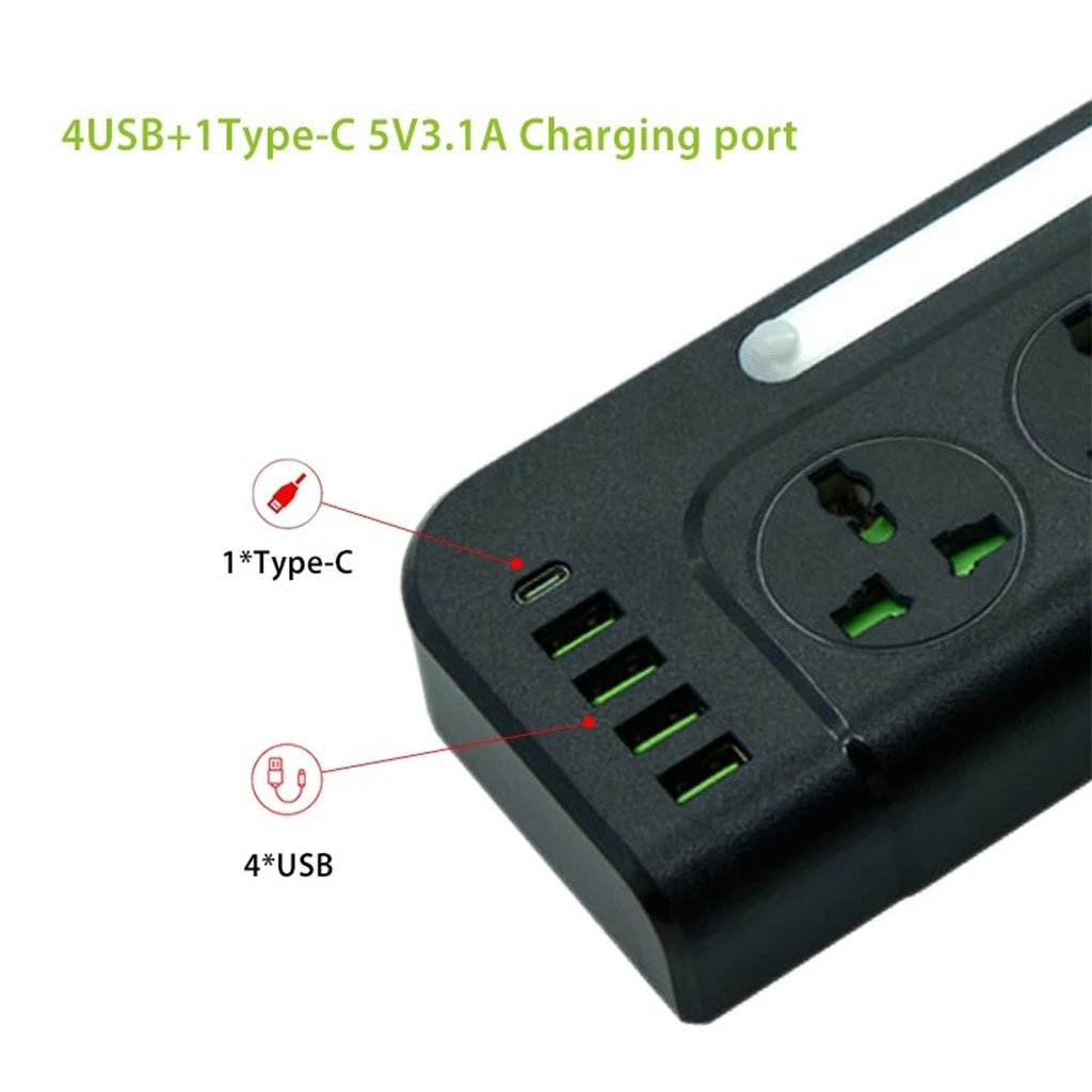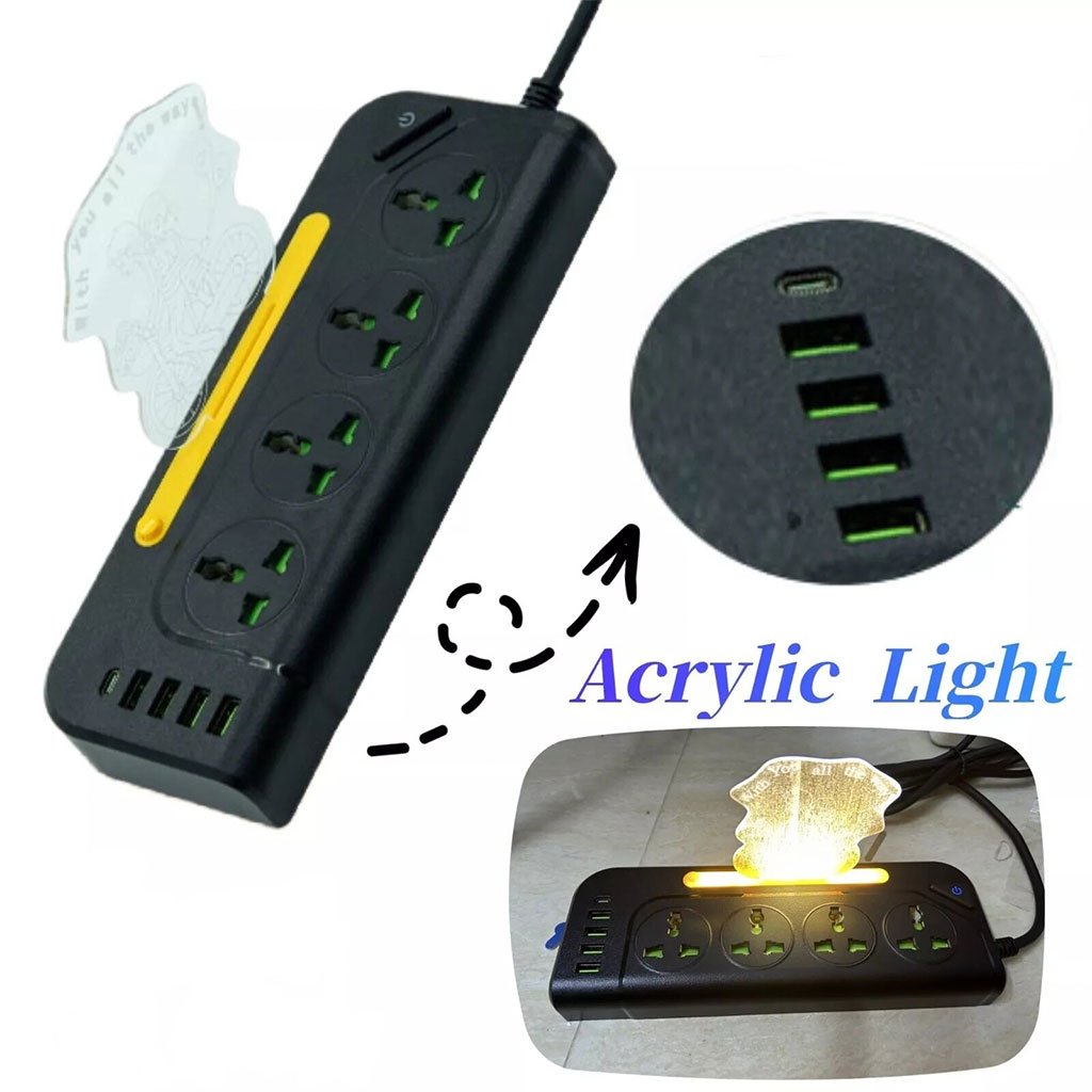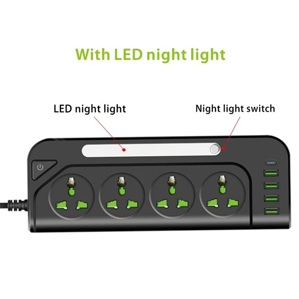 Multiprise 4 Sockets avec 4 Ports USB 1 Type-C 4000W Protection Surcharge et Lampe De Chevet – مقبس طاقة مع منافذ شحن