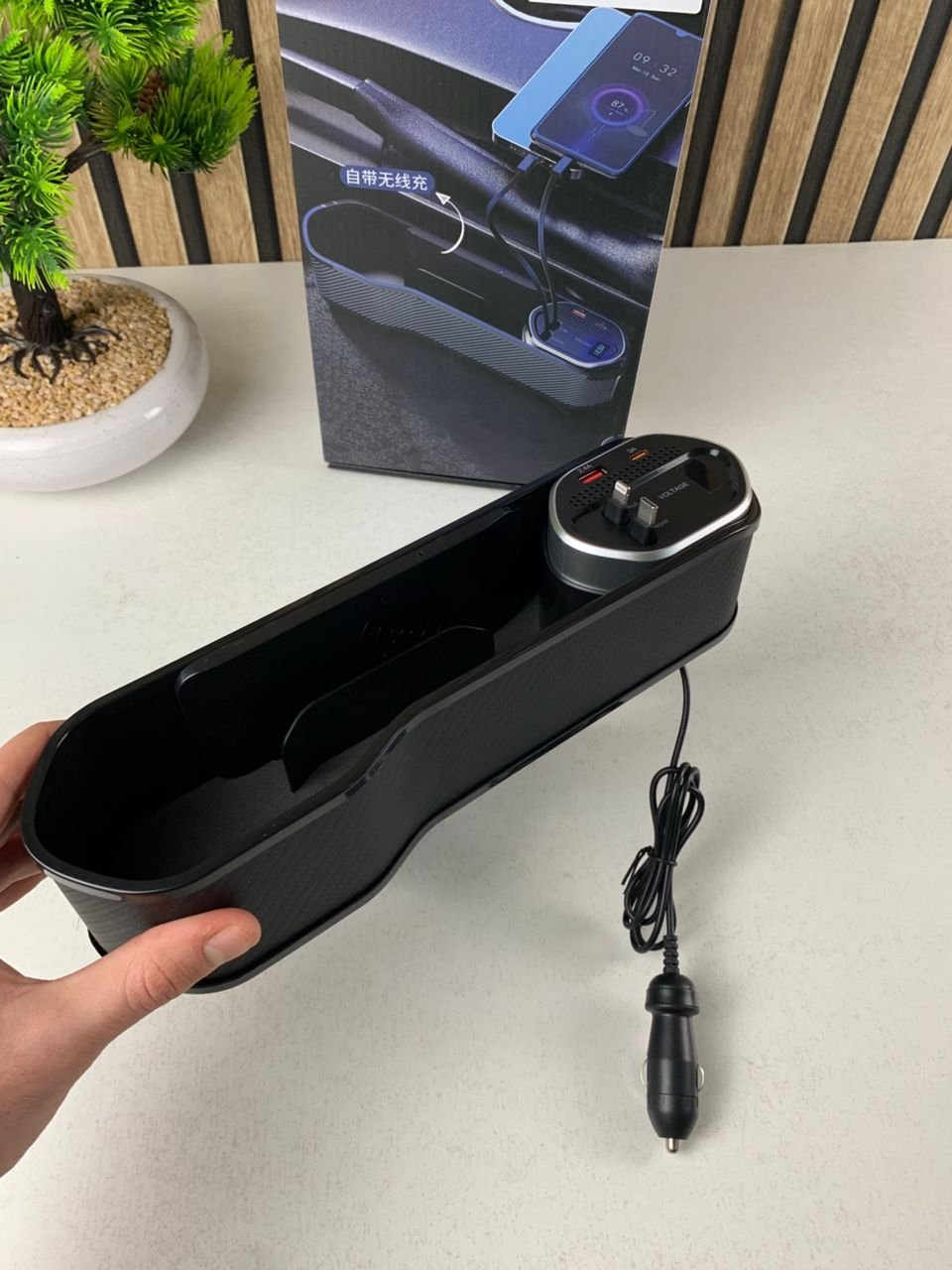 منظّم المساحة بين مقاعد السيارة مع شحن متعددالتوافق: منظّم التخزين هذا مخصّص للمساحة بين المقعد والكونسول الوسطي، ومتوافق مع معظم السيارات. تركيبه سهل وسريع، فقط ضعْه بين المقعد والكونسول. يُرجى مراجعة الصورة الثانية للتأكد من التوافق.تصميم متين وجودة عالية: مصنوع من مواد فاخرة مع لمسة أنيقة بتصميم ألياف الكربون، ليمنح سيارتك مظهراً عصرياً ومتانة تدوم طويلاً. مقاوم للاهتراء اليومي والانسكابات، ومصمم لتحمّل الاستعمال المتكرر.شحن سريع ومتعدد: مزود بـ:كابل USB-C قابل للسحبكابل iOS قابل للسحبمنفذ USB-Cمنفذ USB-Aشاحن لاسلكي طول الكابل القابل للسحب يصل إلى حوالي 80 سم، مع إمكانية شحن عدة هواتف في نفس الوقت. ملاحظة: يُفضّل إزالة غطاء الهاتف عند استخدام الشحن اللاسلكي.تنظيم داخلي ذكي: مساحات إضافية لترتيب أغراضك مثل الهاتف، المحفظة، المفاتيح، العملات، بطاقات الائتمان، الأقلام، نظارات الشمس وغيرها. يمنح داخل سيارتك ترتيباً مثالياً ولمسة فاخرة.قيادة أكثر راحة وأماناً: ما عليك سوى توصيله بولاعة السجائر والانطلاق. هذا المنظّم يحسّن تجربة القيادة اليومية والرحلات الطويلة، ويوفّر راحة أكبر مع مقصورة نظيفة ومرتّبة. كما يُعد فكرة هدية رائعة لأعياد الميلاد، رأس السنة والمناسبات المختلفة.
