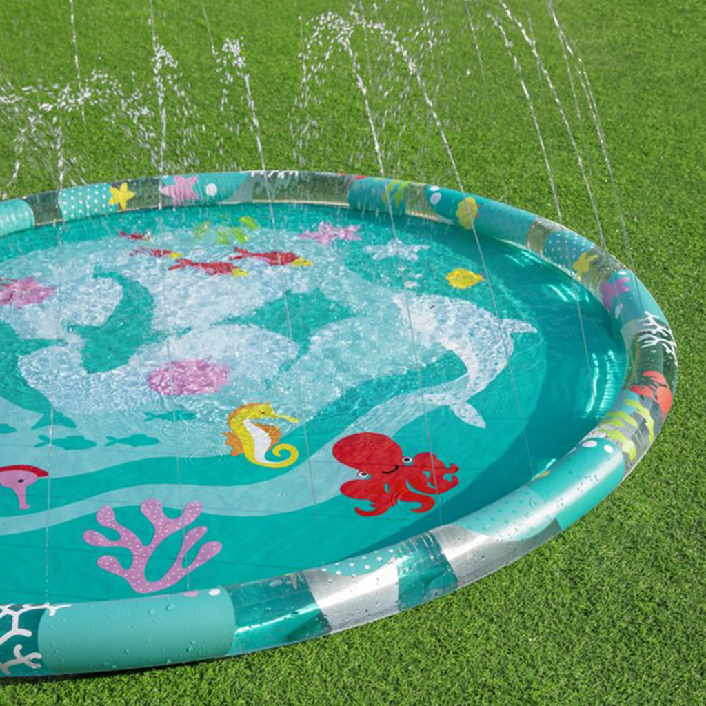 حوض سباحة للأطفال قابل للنفخ مع نافورة 165 سم Bestway 52487 إذا كان طفلك يحب اللعب بالماء، فسوف يعشق بساط الماء المزود برشاش. يحيط البساط إطار قابل للنفخ ليبقي الماء بالداخل. تصميم رائع برسومات حياة بحرية يشجع الأطفال على اللعب معًا. سهل التركيب والتخزين ولا يحتاج إلى مساحة كبيرة. مناسب للأطفال فوق عمر السنتين.محتويات المجموعة:بساط ماءقطعة إصلاحالمواصفات الفنية:القطر: 165 سمسريع وسهل التركيبإطار منتفخ يمنع تسرب الماءتصميم مطبوع جميلمناسب للأطفال فوق سنتينالوزن: 2 كغحجم العبوة: 24 × 6 × 24 سم