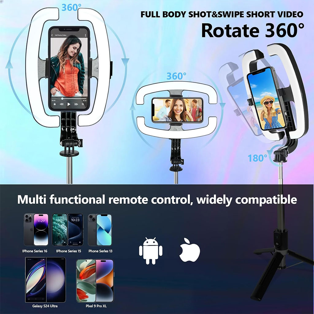 تريبود مع ضوء احترافي — للتصوير، التيك توك، اليوتيوب، الماكياج، ولا اللايف!📸 ثبات قوي بـ4 أرجلالتريبود مصنوع من ستانلس ستيل عالي الجودة، ثابت بزاف وفيه سكاسات صغيرة تحت القاعدة باش يتلزق مزيان وما يهزش. يعطيلك صور وفيديوهات ثابتة بلا رجّة — مناسب للتصوير الاحترافي.💡 إضاءة احترافية متعددةالضوء فيه:🌈 3 ألوان للإضاءة🔆 9 درجات للسطوع🔄 إمالة حتى 180° باش تحدد الزاوية لي تحبدوران 360° وإمالة 270° للضوءمثالي للتصوير، الميكاب، البورتريه، المحتوى… الإضاءة دايما تطلع نظيفة ولامعة!🔭 تصوير من كامل الزواياالارتفاع: من 30 سم حتى 137 سميتحرك بسهولة من زاوية لزاويةتعديل سلس بزاف في الارتفاع والدورانتقدر تصوّر من تحت ولا من فوق بلا صعوبة🎒 قابل للطي وخفيف بزافيتطوى حتى 30.5×15 سم فقط الوزن: 400غ ساهل تحطّو في الشانطة وتديه معاك وين ما تروح، وينحل ويتنصّب في ثواني.📱 Télécommande Bluetoothجاية معاه تليكوموند بلوتوث باش تصوّر من بعيد:ساهلة تربطهاما تضيع حتى لقطةمثالية للصور الجماعية، التيك توك، الفلوغات…📱 متوافق مع كامل الهواتفالماسك يتمد حتى 9.4cm ومناسب لـ :iPhone 16 / 15 / 14 / 13Samsung S25 / S24وكل الهواتف الأخرىممتاز لليوتيوب، TikTok، التصوير، السفر، اللايف…🔋 بطارية قوية قابلة للشحنإضاءة فيها بطارية 1200mAh:تدوم 3–4 ساعاتتقدر تشحنها من Powerbank باش تزيد تخدم على راحتك