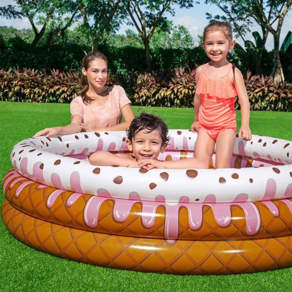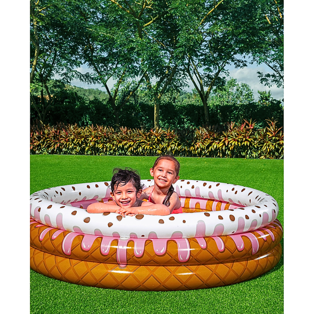 حمام سباحة للأطفال بتصميم الدونات 160 × 38 سم – Bestway 51144شكل جذاب بتصميم الدونات للأطفال بعمر 2 سنوات فأكثر.قاعدة لينة قابلة للنفخ لمزيد من الراحة.مصنوع من PVC متين مع 3 حلقات قابلة للنفخ.السعة: 390 لتر.حجم العبوة: 24 × 24 × 6 سم – الوزن: 2 كجم.المرفقات: قطعة إصلاح.