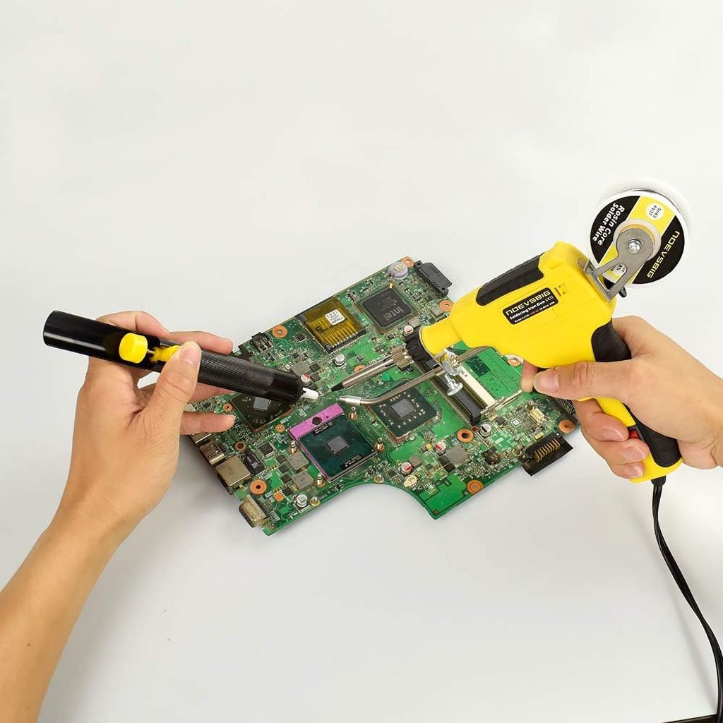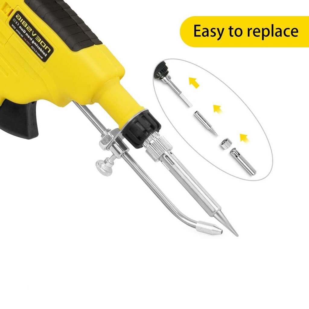 Kit de pistolet à souder automatique portatif : outils de fer à souder largement utilisés pour le soudage de circuits imprimés, la réparation d’appareils, les bricoleurs à domicile, le soudage de bijoux.Utilisation à une main : la ventouse à souder est de construction simple, de sorte que vous soyez droitier ou gaucher, vous pouvez utiliser la pompe à dessouder en l’armant et en appuyant sur le bouton de déclenchement d’une main lorsque vous êtes prêt.Pistolet à souder chauffant interne : ce pistolet ne génère pas d’électricité statique lors de l’utilisation afin que le circuit imprimé de précision ne soit pas endommagé. La technologie céramique chauffée à l’intérieur permet au fer à souder de 60 W de chauffer très rapidement (plage de thermostat (200 °C à 450 °C).Le Ruban n’est pas inclus.