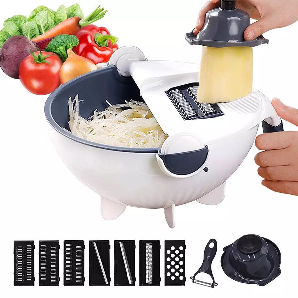 قطاعة خضار متعددة الوظائف مع نظام تصريفتنظيف وتقطيع في وقت واحد مع نظام تصريف مباشر.رأس دوّار قابل للتعديل وسلة ثابتة.مقابض مريحة غير قابلة للانزلاق.قاعدة مستقرة لا تخدش الأسطح.رأس تقطيع قابل للفصل للتنظيف السهل.7 شفرات متعددة الاستخدامات:شفرة 1.5 مم: لصنع شرائح الفاكهة أو أقنعة الوجه.شفرة 2 مم: مثالية للسلطات الدقيقة.شفرة 2.5 مم: لتقطيع الشرائح بسرعة وبجهد أقل.شفرة 3 مم: لشرائح متساوية مناسبة للقلي.شفرة 4 مم: لشرائح أكثر سمكًا ولذيذة.رأس طحن: لبشر الزنجبيل بسهولة.رأس إضافي للاستخدامات المتعددة.المحتويات:1 × سلة مزدوجة لتصفية الماء7 × شفرات1 × سكين مطبخ صغير1 × أداة حماية اليد
