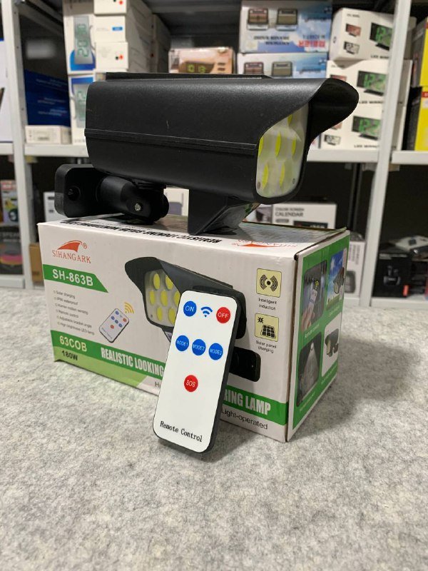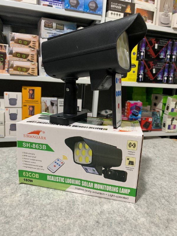 يوفر إضاءة فائقة السطوع ليلاً، بالإضافة إلى كونه مجهزًا بحساس حركة. يشبه كاميرا حقيقية ويعمل كوسيلة فعالة للردع وحماية ممتلكاتك. يشحن تلقائيًا بالطاقة الشمسية خلال النهار لتوفير إضاءة ليلية. مقاوم للماء والحرارة ومناسب لجميع الظروف الجوية. سهل التركيب للغاية، يمكن تركيبه في أقل من دقيقة. يحتوي على 77 لمبة LED لإضاءة فائقة السطوع. بطارية طويلة العمر. مزود بثلاثة أوضاع إضاءة. مزود بجهاز تحكم عن بعد. .