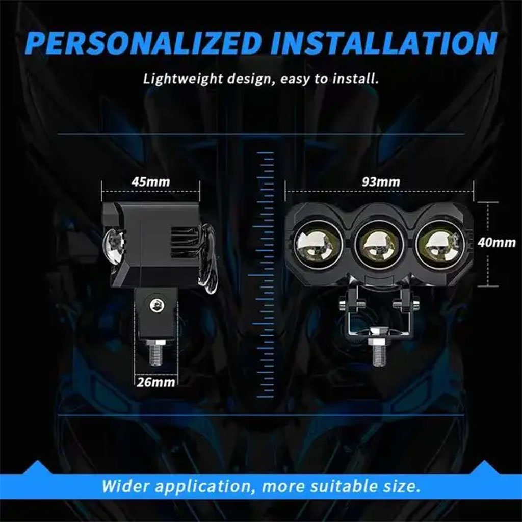 Projecteur Universel LED à 3 lentilles Pour Vélo et Moto