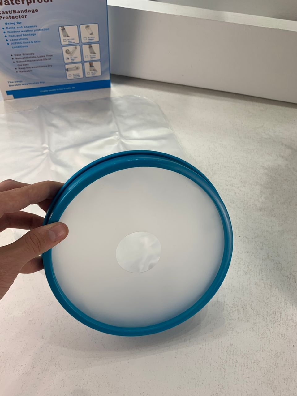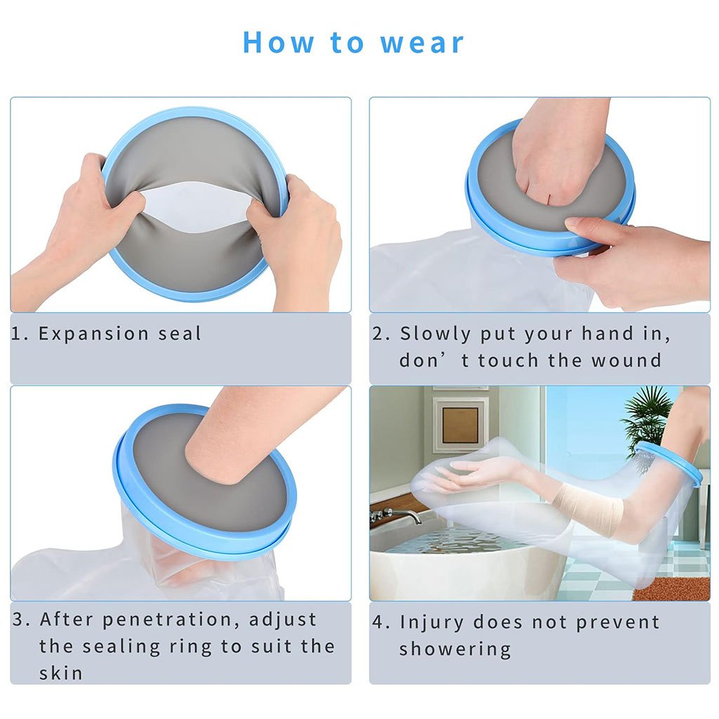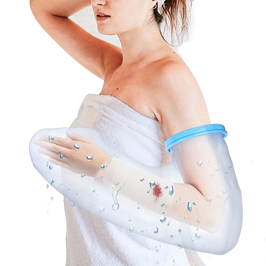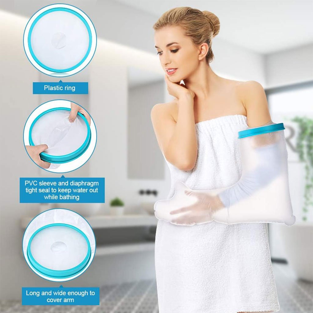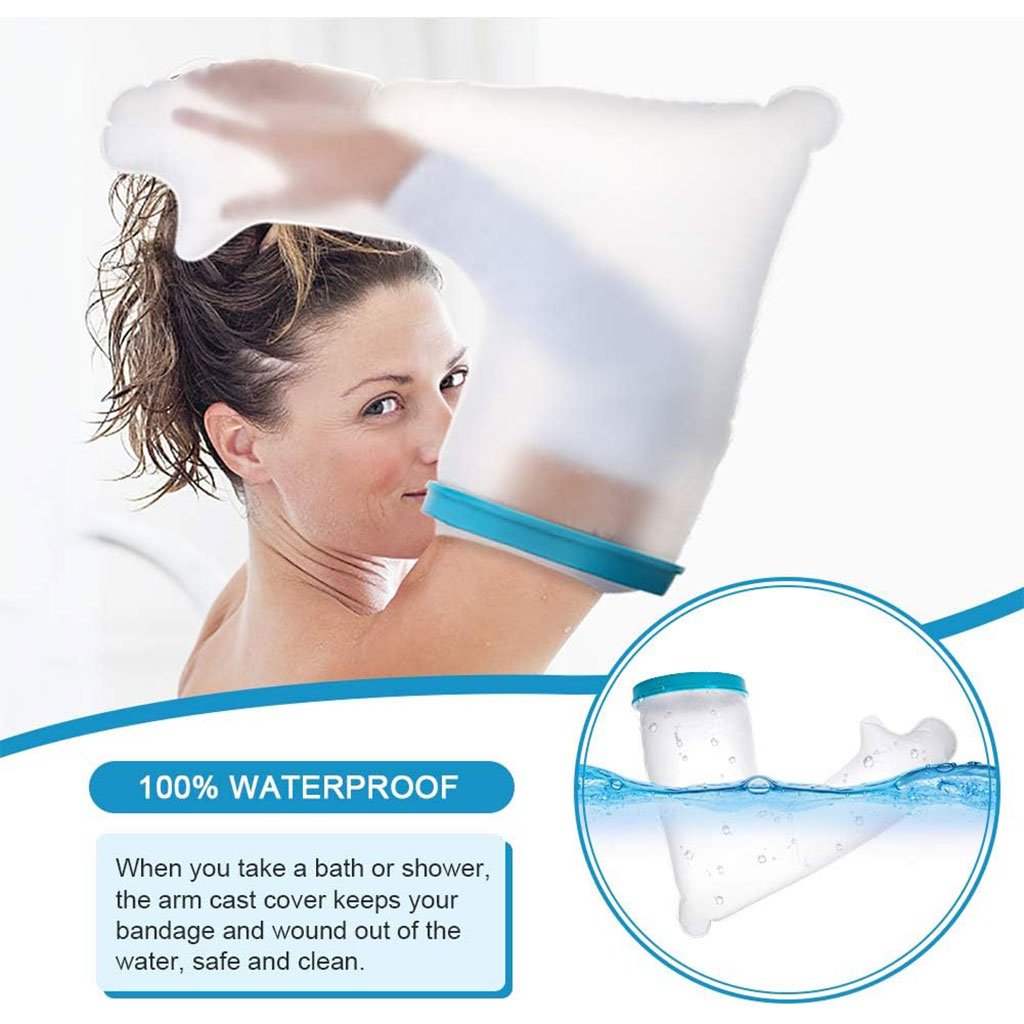غطاء واقٍ للجبيرة / الجص للذراع – مقاوم للماء وخفيف الوزن🔹 غطاء ذراع خفيف الوزن : كان المطاط في الطراز القديم يترك آثارًا على الجلد بسهولة. أما الغطاء الجديد المقاوم للماء فهو مصنوع من مطاط أكثر مرونة لا يترك أي أثر على البشرة ولا يلتصق بها. الغشاء المرن والمحكم الإغلاق لا يعيق الدورة الدموية.🔹 حماية فعالة ضد تسرب الماء : مثالي للاستحمام والاغتسال، وخصوصًا للأشخاص الذين يتعافون من عملية جراحية أو يعانون من مشاكل جلدية. يحمي المنطقة المصابة من البلل. يُوصى به أثناء الاستحمام أو الأنشطة الخارجية بعد إصابة، عملية جراحية، حادث، أو في حالات مثل الطفح الجلدي، الحروق، مشاكل الجلد أو الجروح.🔹 غطاء جبيرة مقاوم للماء للذراع : بطول 60 سم، يغطي الذراع بالكامل، مما يجعله مثاليًا لحماية الأصابع والذراع. مصنوع من مادة خفيفة، صحية وقابلة للغسل، لا تلتصق بالذراع. الفتحة المركزية المرنة، التي يمكن أن تمتد حتى 15 سم قطرًا، واسعة بما يكفي لمرور الجبيرة، وفي الوقت نفسه محكمة بما يكفي لمنع تسرب الماء.🔹 صديق للبيئة وآمن : الغشاء مصنوع من سيليكون طبي عالي الجودة، والكم من PVC، وهو مادة مانعة للانزلاق لا تلتصق بالذراع. خالٍ من اللاتكس، عديم الرائحة والطعم، سهل الغسل. الفتحة المرنة الناعمة تجعل ارتداءه وخلعه سهلاً وغير مؤلم.📏 الأبعاد : 60 × 15 سم