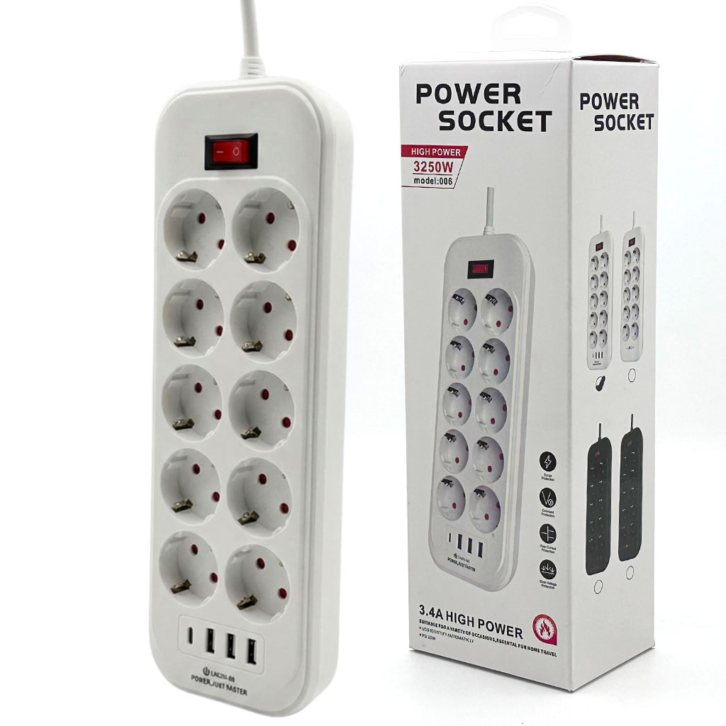 Rallonge Multiprise 10 Prises et 4 Ports USB Haute Puissance 3250W – مقبس طاقة متعدد المنافذ