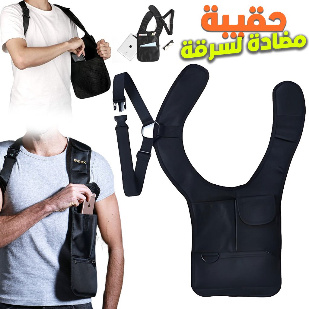 Sac à bandoulière antivol dissimulé sous les aisselles – حقيبة أغراض مضادة لسرقة