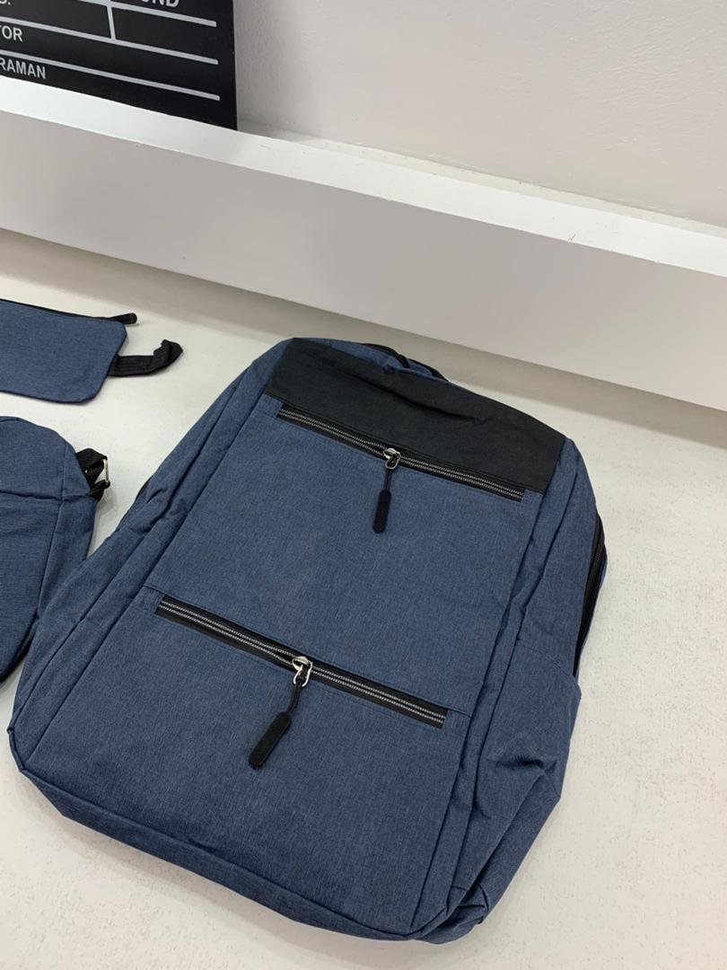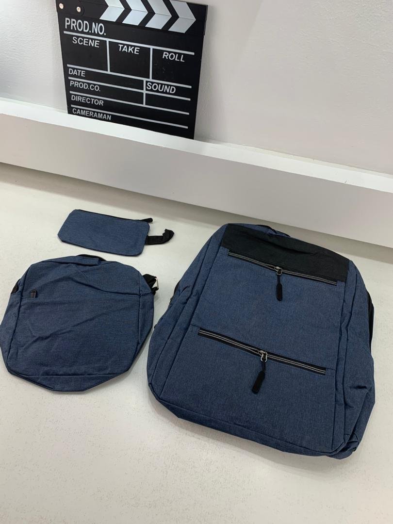 Sac à dos homme avec sac bandoulière et trousse 3en1 bleu 2775-11 – محفظة ظهر رجالية 3 قطع أزرق
