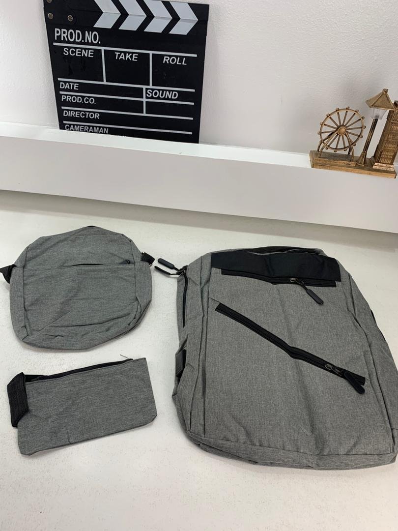 Sac à dos homme avec sac bandoulière et trousse 3en1 gris 127772-5 – محفظة ظهر رجالية 3 قطع رمادي